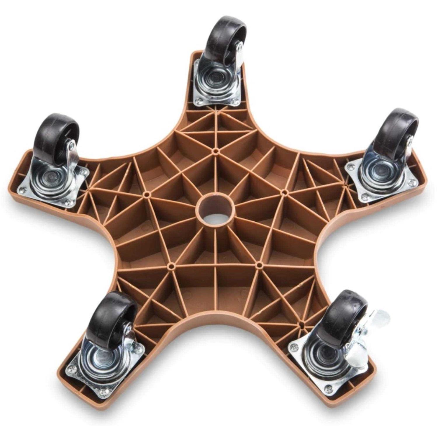The Plantstand 18410 16 in 5-Wheeled Plant Caddy is approved for both indoor and outdoor use while improving container drainage. One locking caster keeps the device in place when it is located where you want it to be. This black rolling plant caddy is made from UV resistant plastic and moves about on 5 quality nylon and steel wheels. It can handle a load of up to 500 lbs with ease.