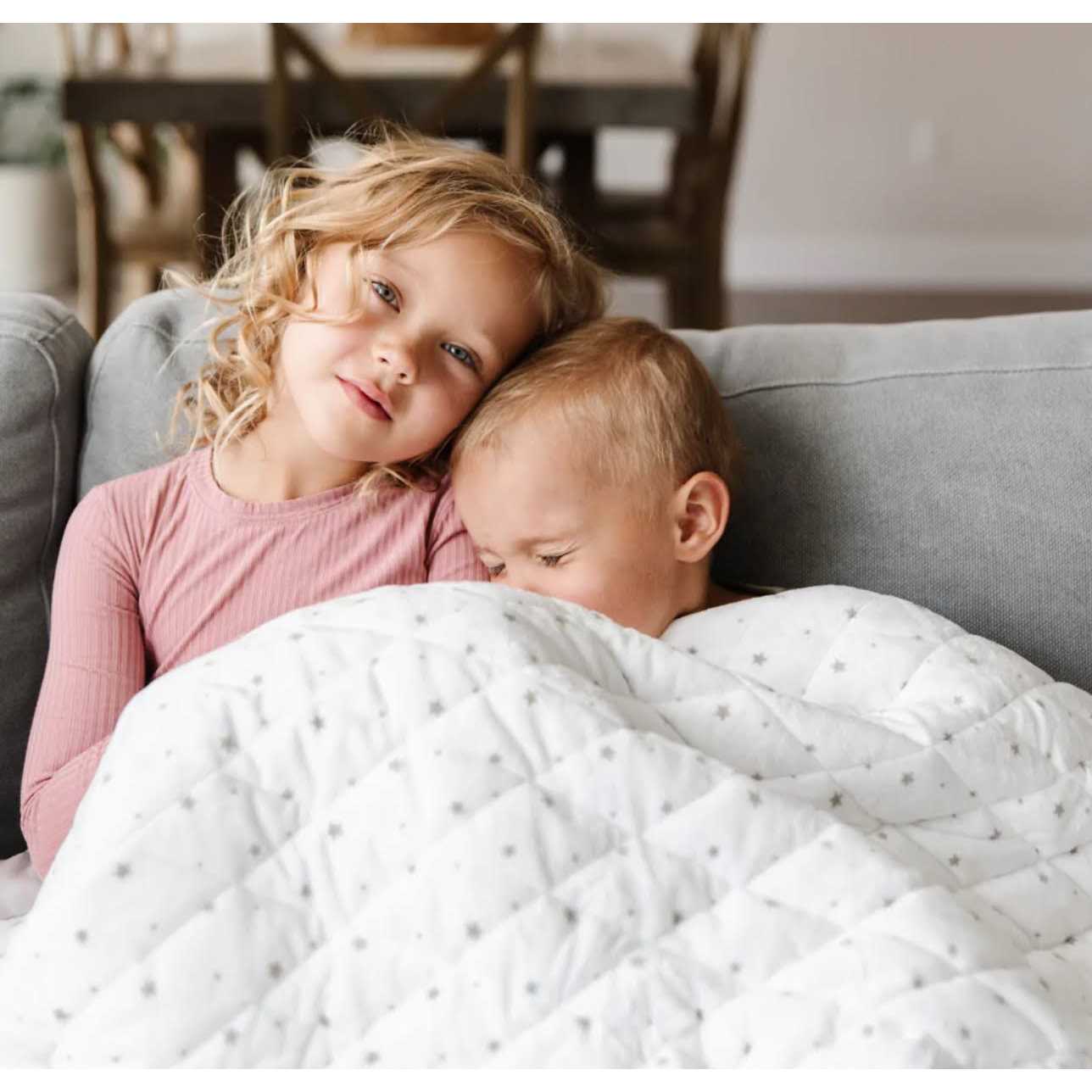 The 4 lbs Dream Weighted Sleep Blanket is designed to keep your little one (age 3 years+) warm and cozy now and for years to come. The gentle weight naturally reduces stress, increases relaxation and provides security to help children feel calm, fall asleep faster and stay asleep longer. The evenly distributed, gentle pressure mimics the feeling of being hugged and encourages comfort during nighttime or naptimes. Moisture-wicking and breathable, it features dual fabrics鈥攐ne side is cozy premium micro-fleece, and the other side is a minky, cooling fabric. Hypoallergenic, fine-grade glass beads are securely contained within the blanket’s inner pockets, and a satin edge serves as an extra layer of security for little ones who love to rub something soft on their face. Note: Child must be over 30 lbs and have the ability to remove the blanket to prevent suffocation or other injury. Weighted blankets should be worn below shoulders and not cover the child’s face or head.