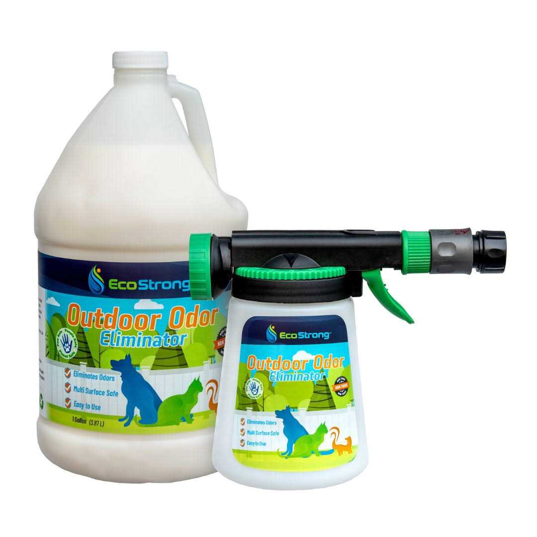 EcoStrong’s Outdoor Odor Eliminator is an all-natural solution that eliminates unpleasant outdoor odors. Permanently erase urine, stool, vomit, skunk, or even garbage odors from your outdoor spaces. Safe for use on virtually all outdoor surfaces; rock, dirt, grass, fences, furniture, concrete, wooden decks, and more.