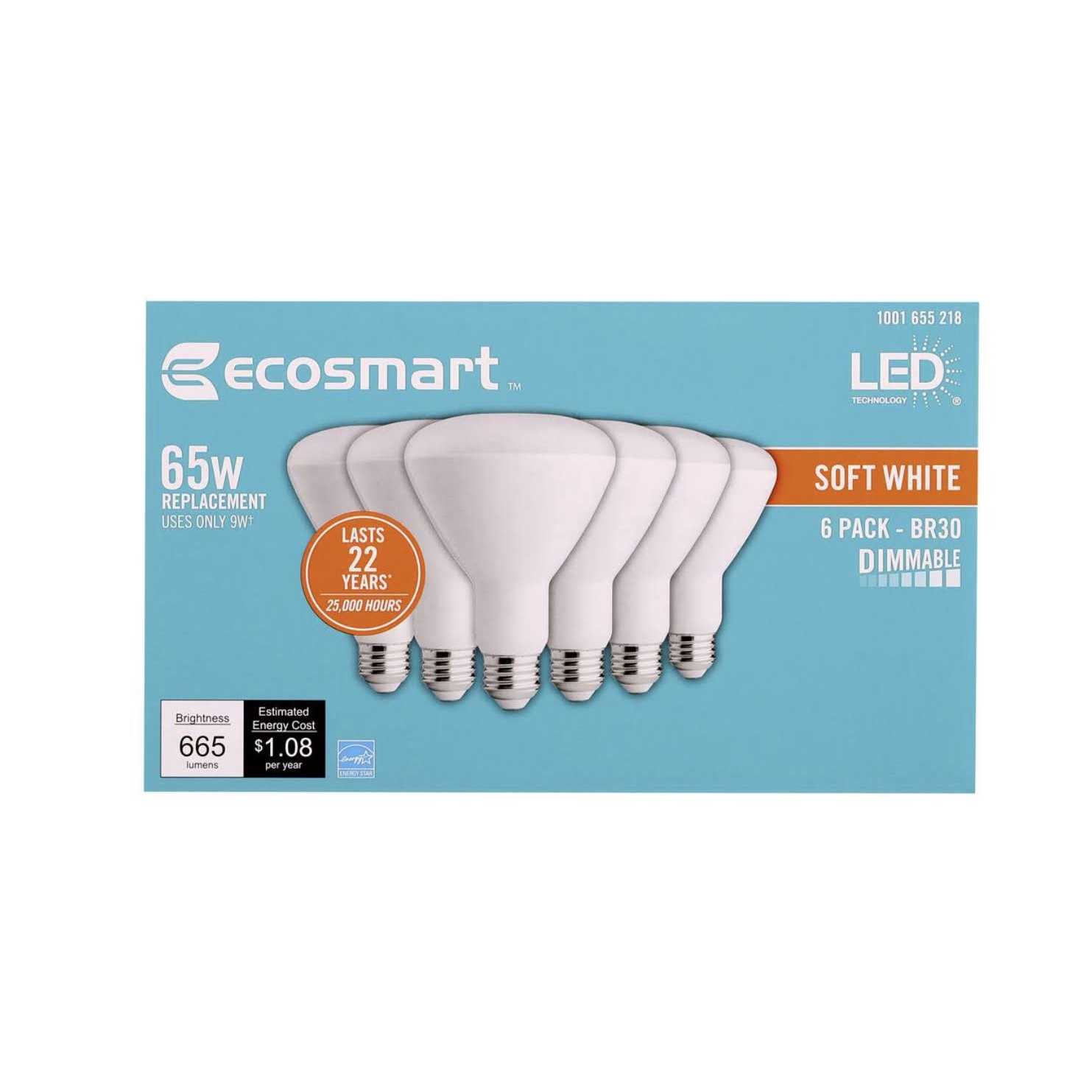 Ecosmart 65-Watt Equivalent Soft White BR30 Dimmable LED Light Bulb 6-Pack