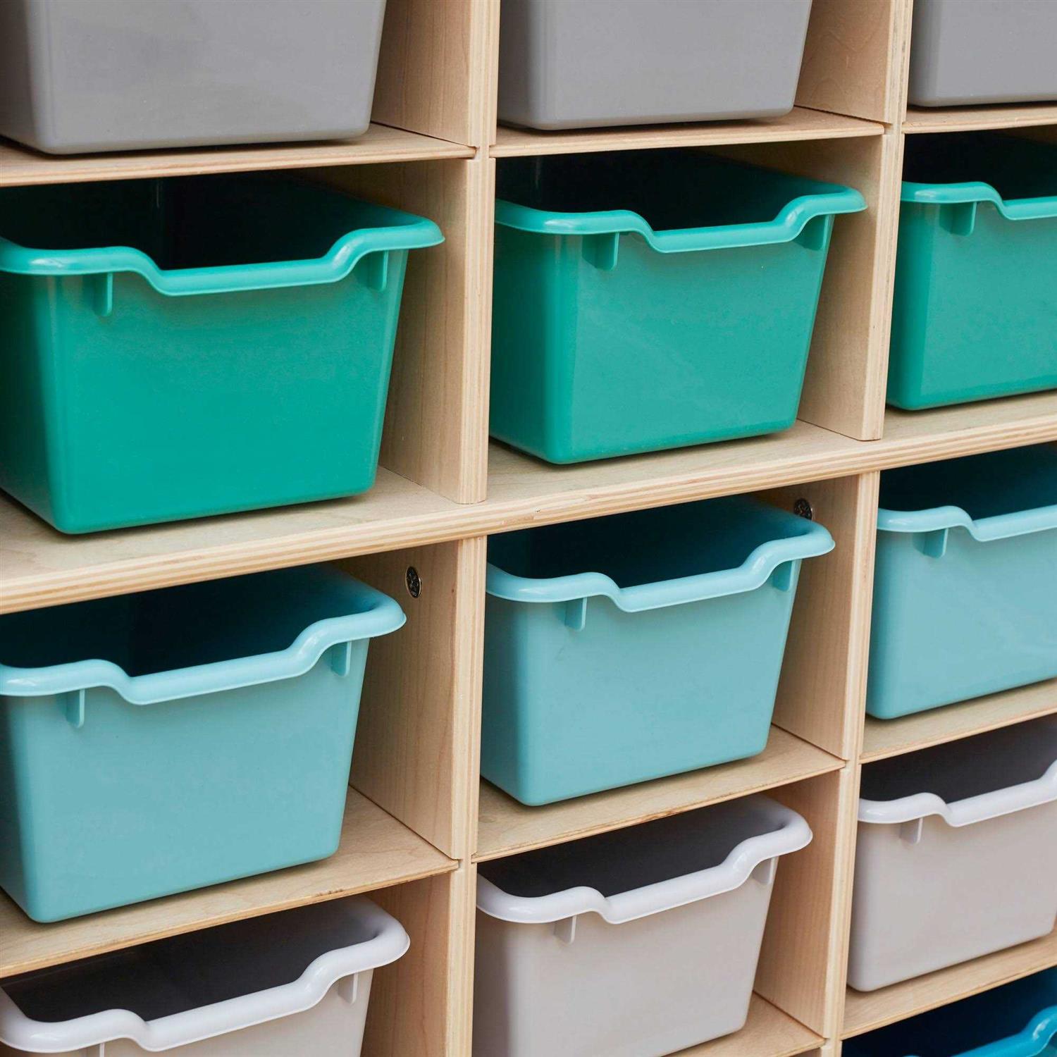 Keep your classroom and home organized, tidy, and efficient with ECR4Kids Scoop Front Storage Bins. The sturdy plastic bins are designed for everyday use to keep small items contained off the floor. Teachers, educators, and parents can utilize bins to store books, toys, manipulatives, and games. The open bin design displays and provides easy access to contents. Organize stories and label bins by reading level, theme, or holiday, encouraging children to independently select their favorite story and clean up during playtime. Personalize trays in classroom cubbies for children to store art projects, individual items, homework, and more. The Scoop Front Bins provide a flexible storage solution with endless possibilities for use from the garage to the kitchen pantry, or nursery. Durable plastic bins feature rounded edges, an easy-to-grasp scoop front handle, and a curved interior to simply remove contents. Lightweight bins are easy to pick up and carry, transporting from a storage cabinet to a play space. Bins nest to save space, and built-in stack supports prevent locking when empty. Use as standalone storage or pair with ECR4Kids storage lockers, cubby units, or tray cabinets; sold separately.