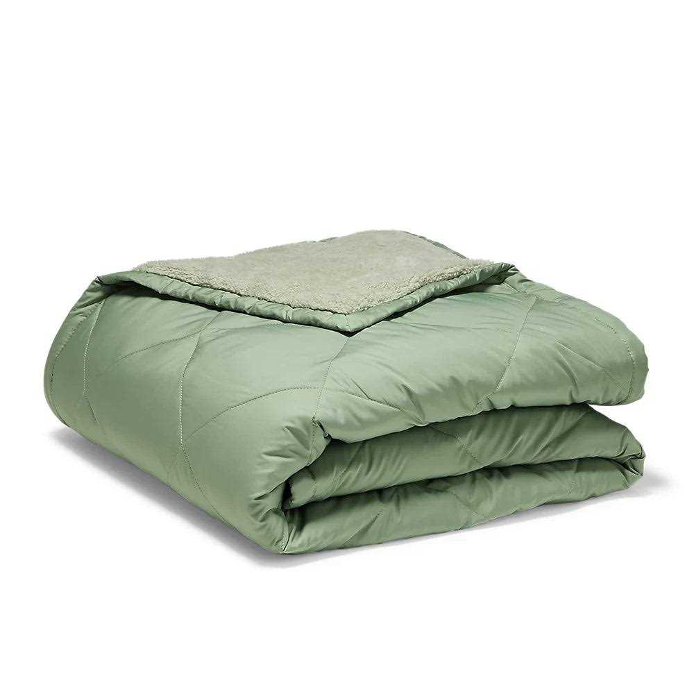 Ultralight and insulated with toasty, premium down, our throw is perfect for the living room, guest room, or anywhere else. It features a soft polyester shell on one side and cozy fleece on the other. Plus, it comes gift-ready, tied with a ribbon.
