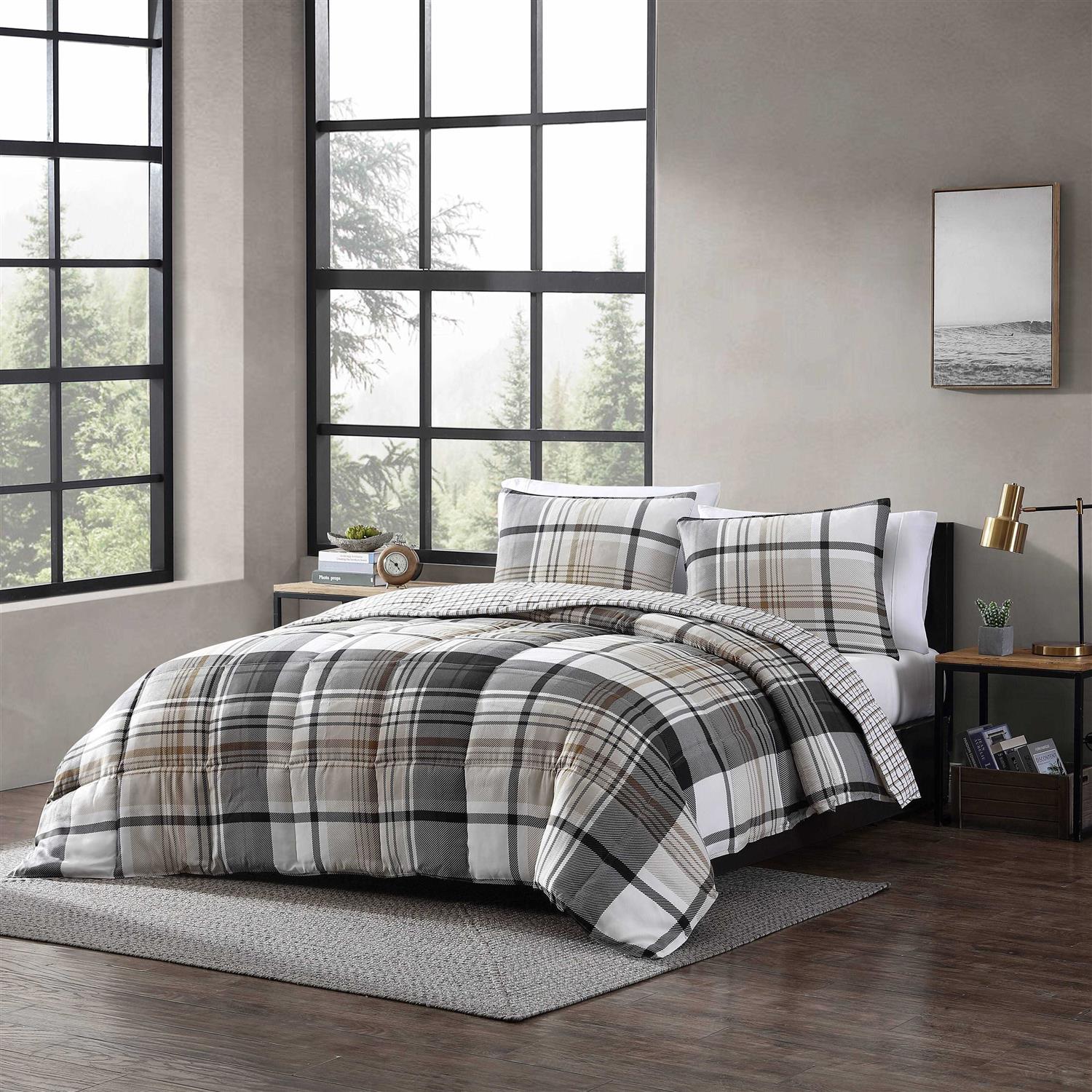 Eddie Bauer Normandy Plaid Comforter Set, Black, Full/Queen