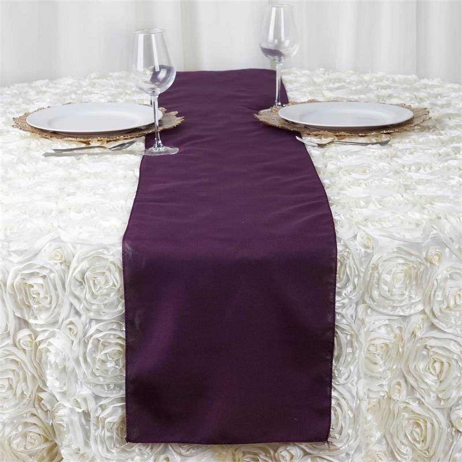 Polyester Table Runner: This polyester table runner is a fusion of modernity and delicateness. As an alternative to traditional satin and organza fabric, the look of natural texture and coloration make this table runner easily fit with any table setting, and introduce a peaceful and exquisite tone to the atmosphere that your guests will remember for years to come. The polyester runner is finely woven and serged. Measure: 12 wide x 108 long Used In * Wedding Table Decoration * Table Decoration * Outdoor Easter Decoration * Table Setting * Dining Table Decoration * Easter Table Decoration * Wedding Reception Decoration * DIY wedding decorations * Wedding Tables * Table Decor * Christmas Table D???? cor * Flower Table Decoration * Wedding Ceremony D???? cor * Birthday Table D???? cor