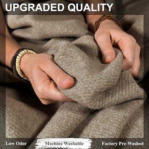 Ektos 100% Wool Blanket Queen size, 90″ x 90″, Large Camping Blanket, Cold Weather Blanket (Light Brown, Queen)