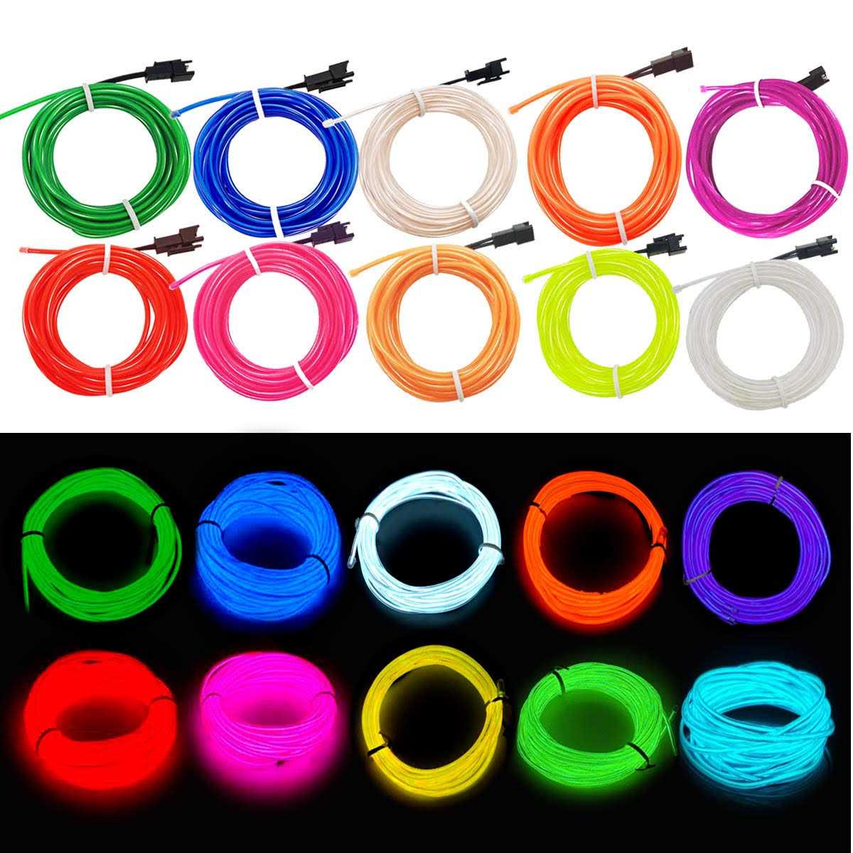 El Wire 10 Pack, 9ft Neon Light with Battery Pack (Red, Blue, Pink, Green, White, Ice Blue, Purple, Yellow, Orange, Lime Green) for Halloween