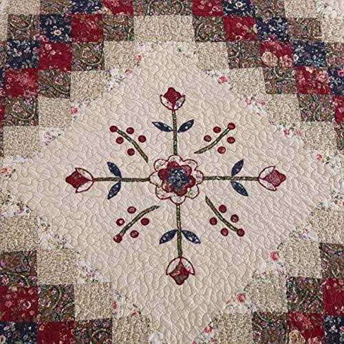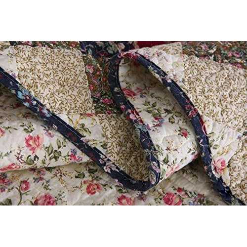 Cotton Crafted of 100% Cotton cover and fill 3 Piece Quilt Set includes: Full/Queen Quilt (90″x90″) and Two Standard Size Pillow Shams (20″x26″ea) Machine Wash/Dry This finely crafted Victorian Treasures quilt set resembles a family heirloom that is passed from generation to generation. Vermicelli-quilted, and hand pieced, 100% cotton quilt has a light cream background featuring a patchwork diamond design in various floral patterns in burgundy red, navy blue, and antique gold with embroidery outline. Reverses to a floral print on light cream.