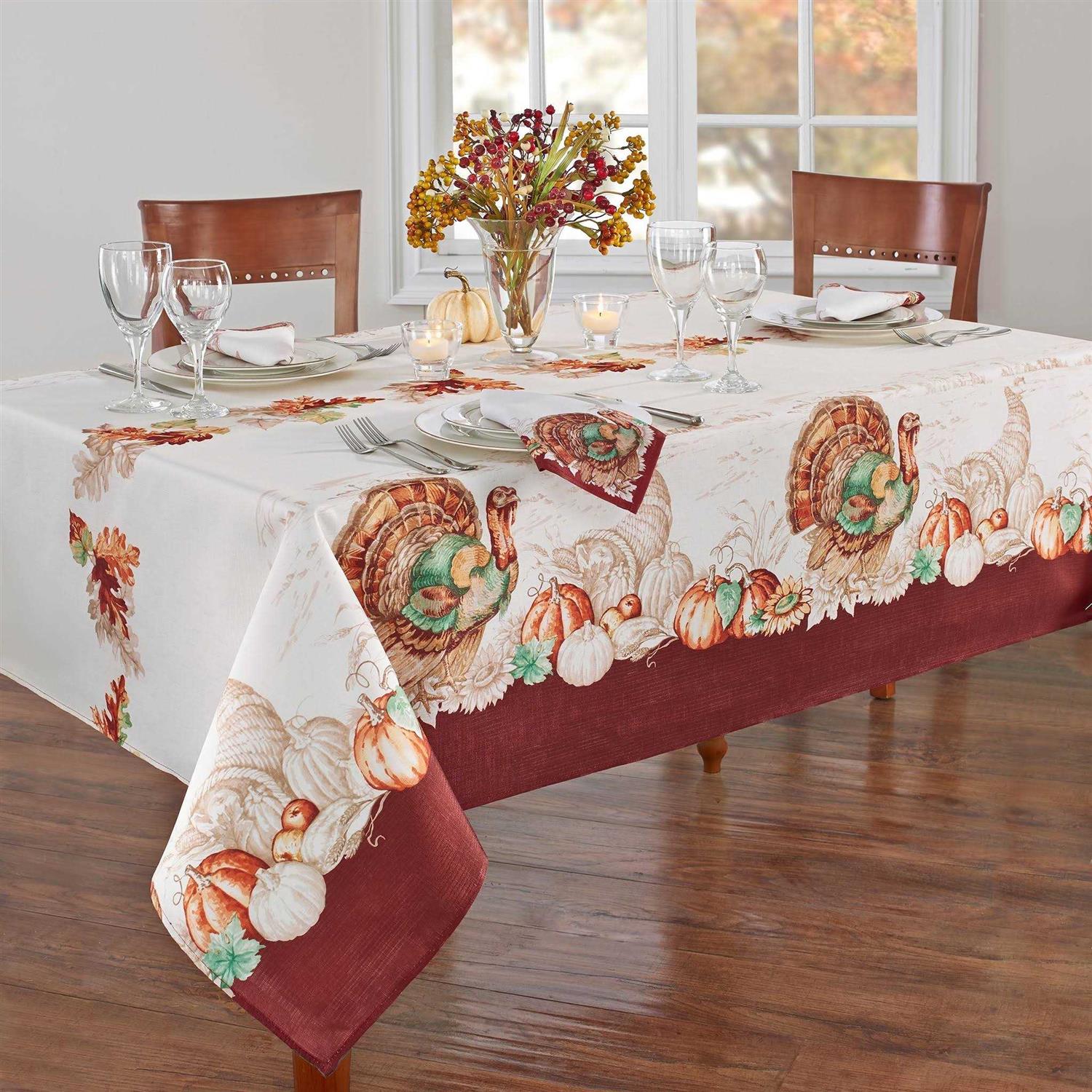 Elrene Home Fashions Holiday Turkey Bordered Fall Tablecloth