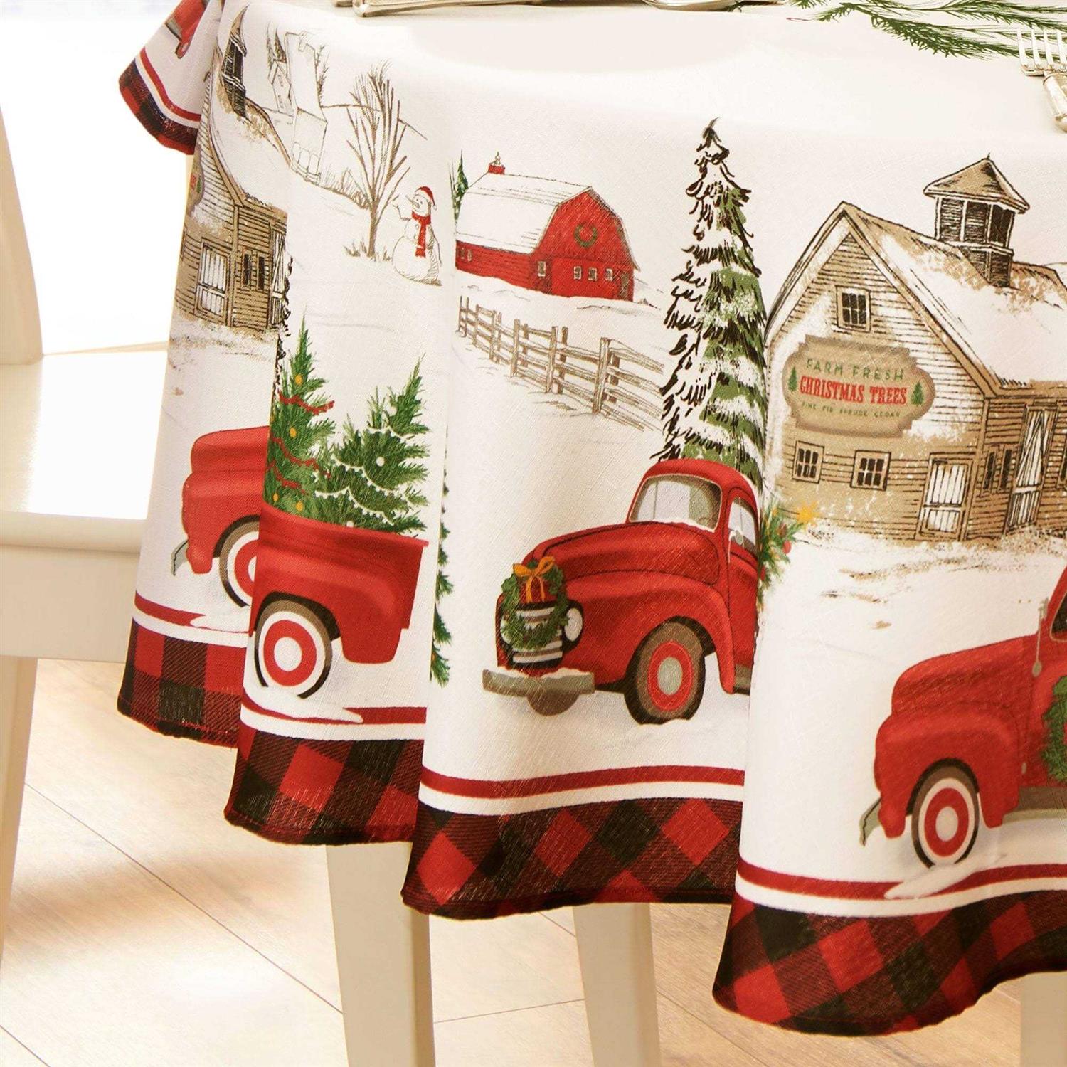 Elrene Home Fashions Vintage Christmas Tree Farm Holiday Tablecloth