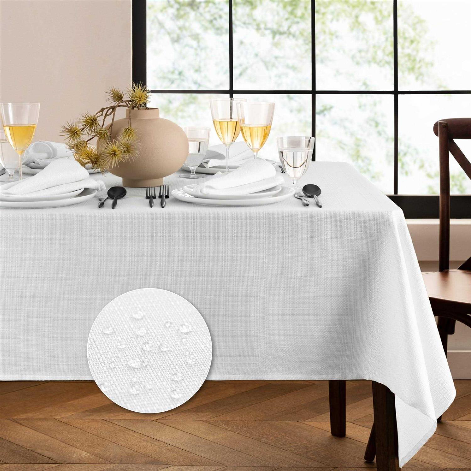 Elrene Laurel Solid Texture Water and Stain Resistant Tablecloth, 60″ x 102″, White