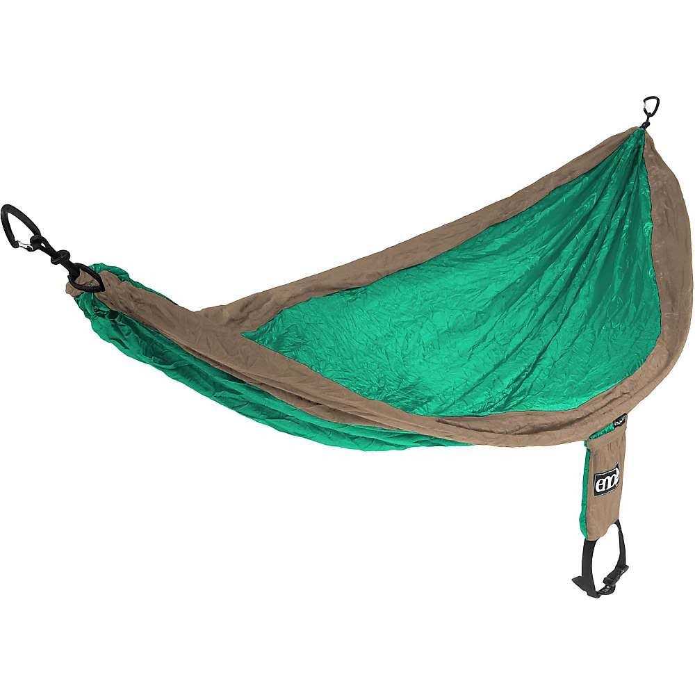 ENO SingleNest Hammock — Perfect for one, the compact and lightweight SingleNest Hammock is expertly constructed with durable yet soft FreeWave fabric, making it ideal for solo relaxation on any kind of adventure. With its ability to compress down to the size of a grapefruit, the SingleNest makes relaxation part of every adventure. Plus it packs into its own stuff sack, which doubles as storage for your belongings when you’re hanging out. ENO’s SingleNest hammocks feature a longer hammock body using triple-stitch seam construction with proprietary FreeWave fabric, which offers an exclusive crinkle treatment for exceptional softness and packability. Quality gear begins with quality materials. ENO has refreshed all of the hardware components including a specially designed hammock-grade carabiner, custom side-release buckle, and larger cord lock for easy setup and pack up every time.