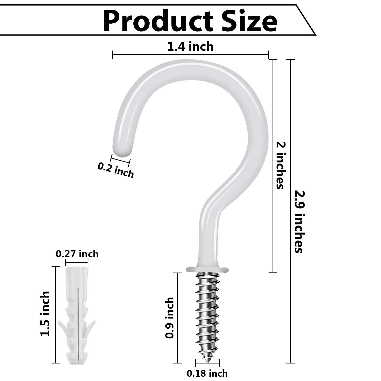 Etoolia 20 Pcs Ceiling Hooks for Hanging Plants – 2.9 Inches Heavy Duty, Hanging Hooks for Christmas Lights, Cups, Decors – White Vinyl Coated Screw