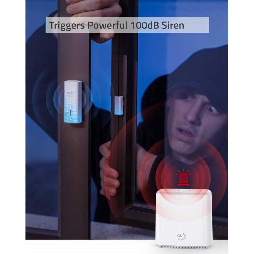 Style:SensorEntry Sensor Protect Your Doors and Windows from Break-Ins with eufy Security Entry Sensor. Once a window or door is ajar by 1.5 inch, an alert will be sent to your smartphone, and a 100-decibel siren will go off on the HomeBase (can be disabled).