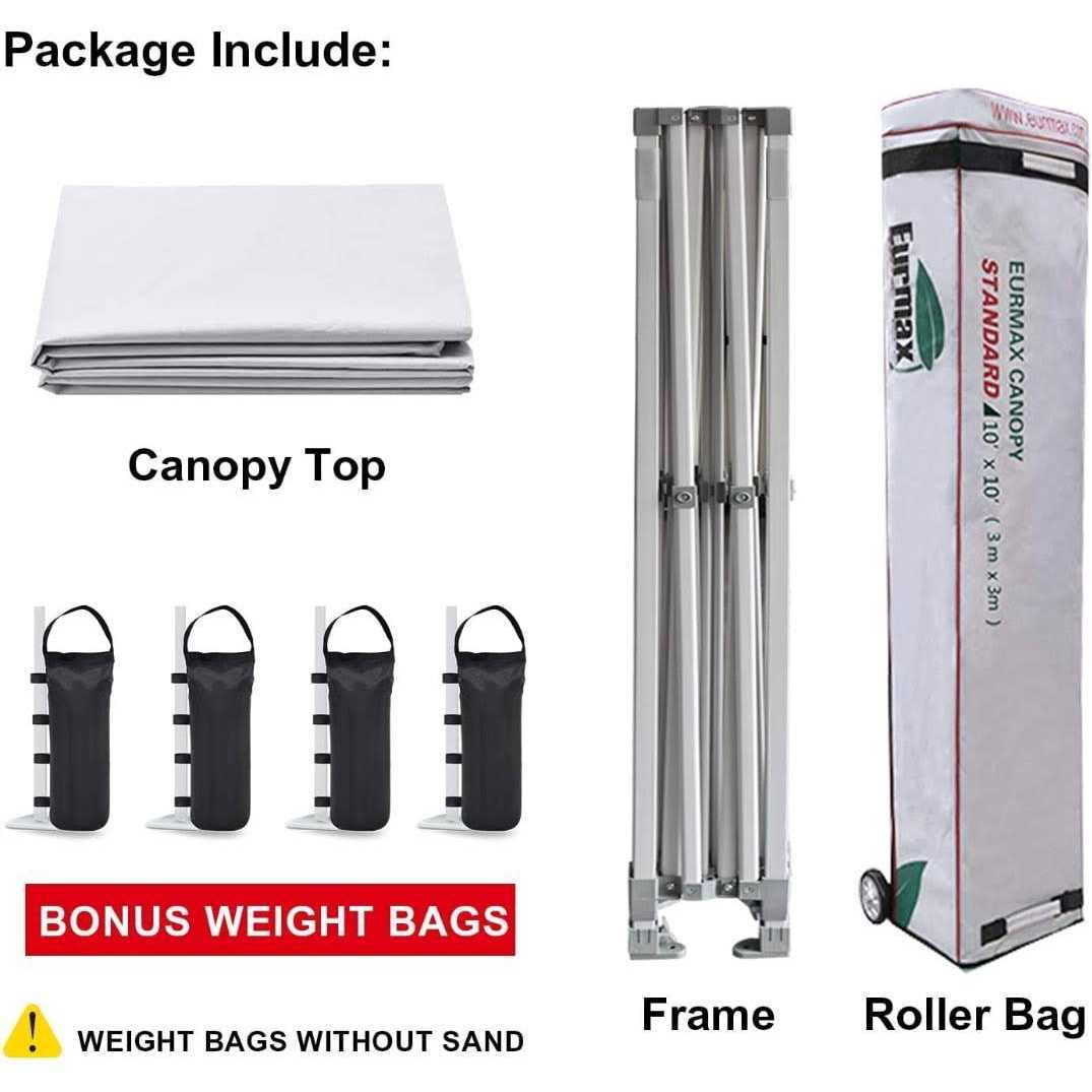 Eurmax ez pop up 8×12 canopy for party, parties, picnics, market stall/market trade show or any outdoor events. Eurmax heavy duty canopy suitable for both sunny and rainy days. Commercial Canopy Weight is 60LBS. Set up and take down easily by 1 or 2 person in minutes without any tools. Great choice for you!