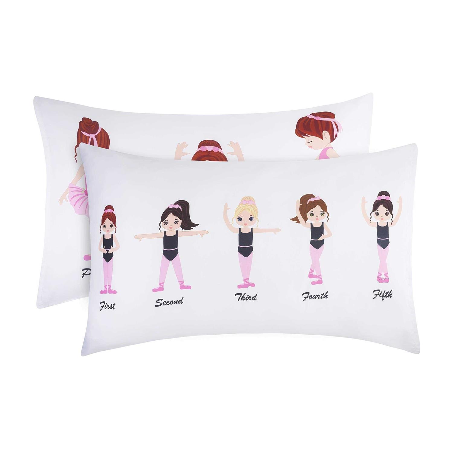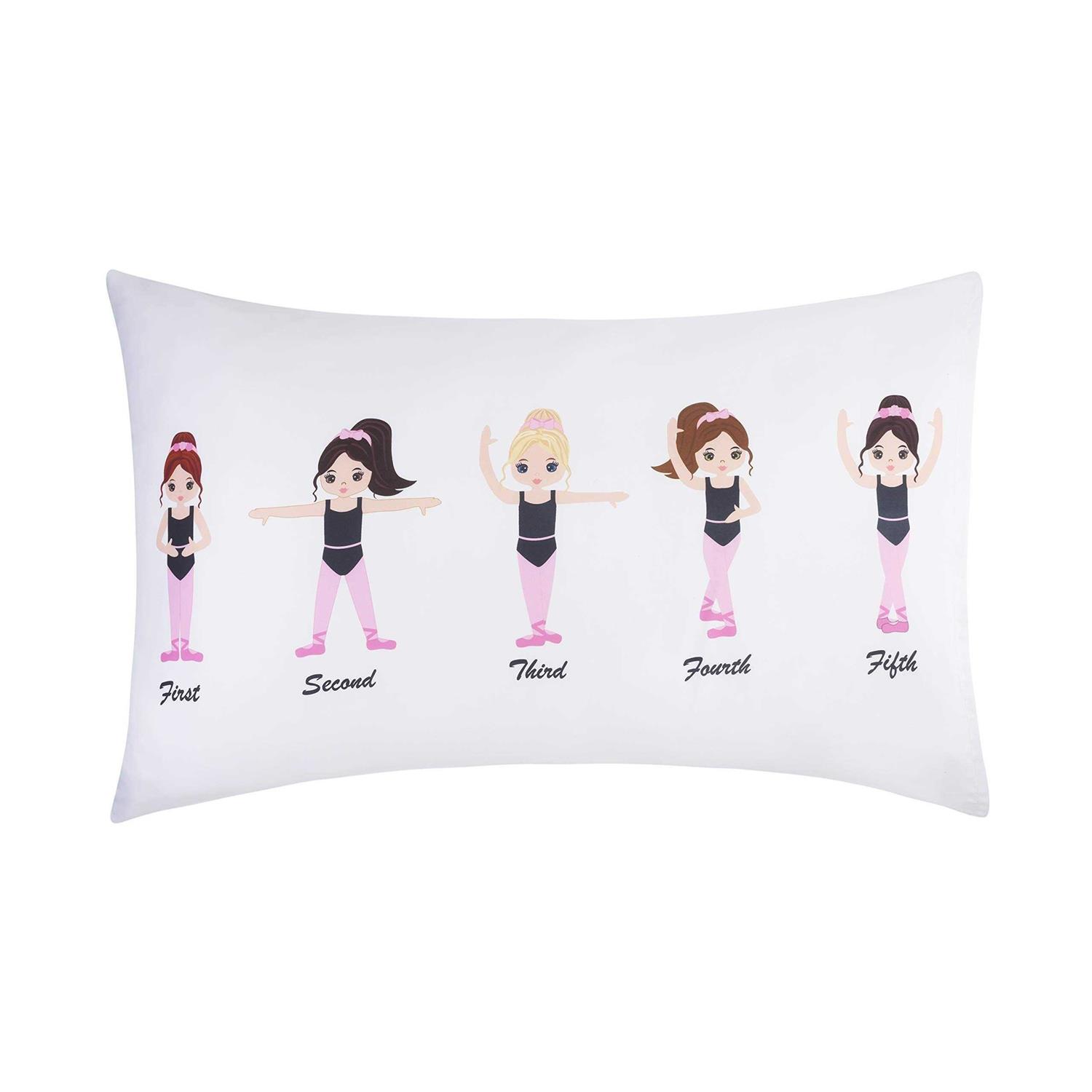 Inspire the budding ballerina in your life with the adorable Everyday Kids Toddler Fitted Sheet Pillowcase Set in Born to Dance Ballerina. This girls toddler sheets set shows girls in glittery skirts and leotards doing several ballet poses. The pillowcase shows different labeled ballet positions, making it both cute and interactive. The lovely illustrations on this ballerina toddler sheets set helps keep your daughters mind engaged as she lies in bed. A few poses before bed or after waking up gets small girls into the habit of being active, preparing them for exercise as they get older.