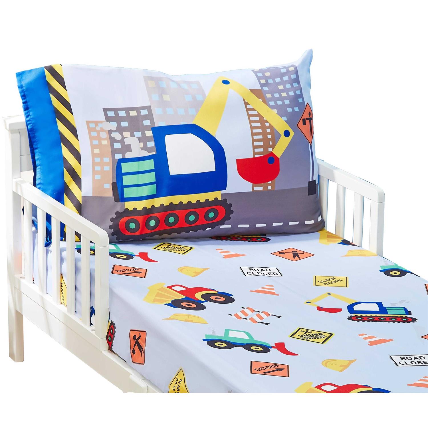 - Toddler Fitted Sheet and Pillowcase Set -Under Construction- Soft Breathable Microfiber Toddler Sheet Set