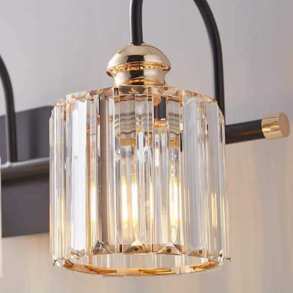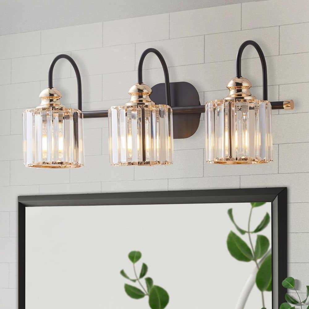 ExBrite Merrin 23.1 in. 3-Light Black Golden Bathroom Vanity Light with Crystal Shades