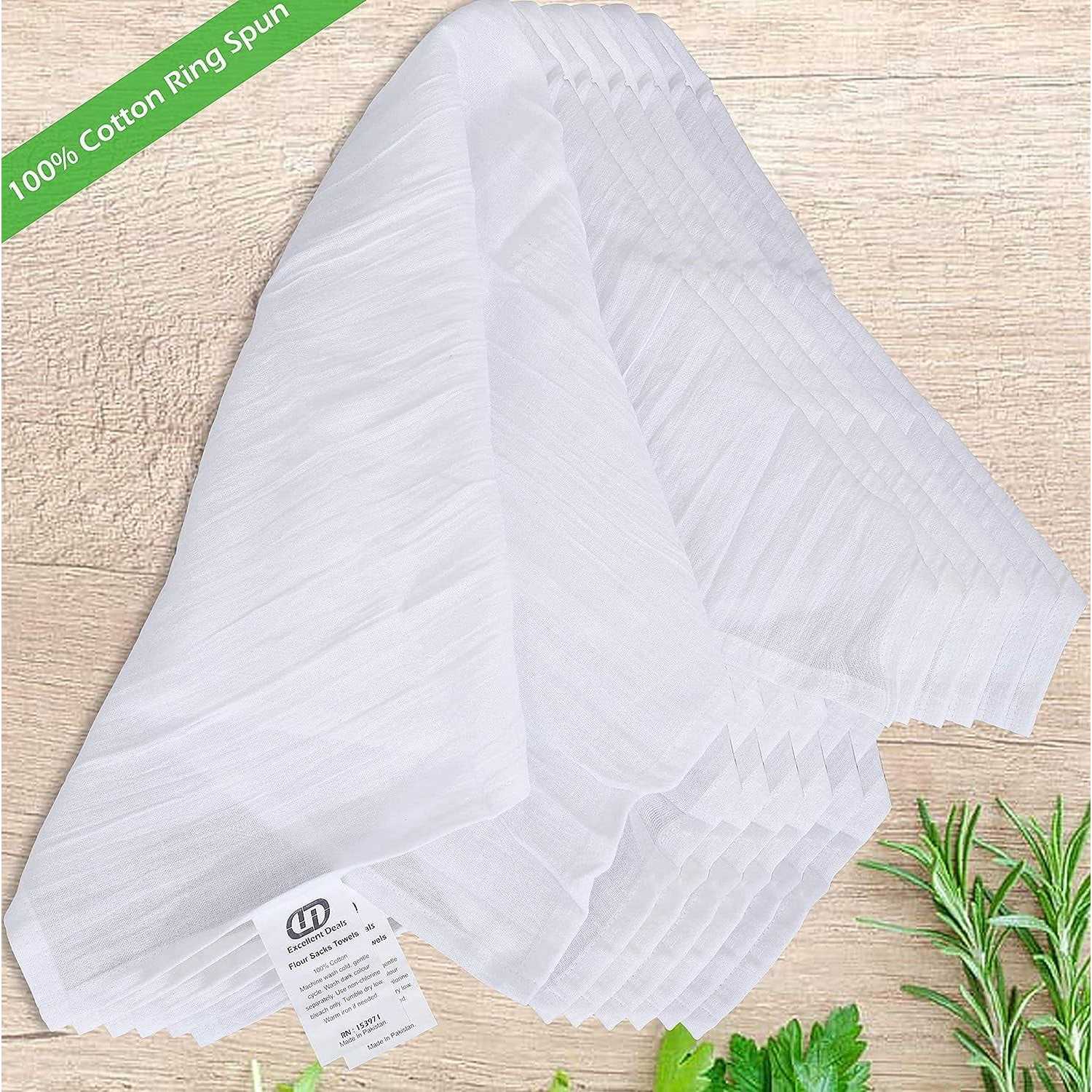 Excellent Deals Flour Sack Kitchen Towels (White,12 Pack) 100% Cotton,28×28 inch Cloth Napkin, Bread Wrapper, Cheesecloth, Multi Purpose Kitchen