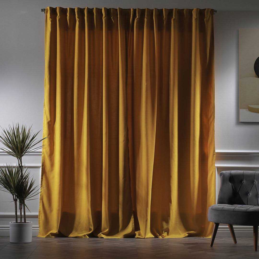 Extra Long and Extra Wide Faux Velvet Single Panel Lilijan Home & Curtain Size per Panel: 100″ W x 120″ L, Curtain Color: Mustard Yellow