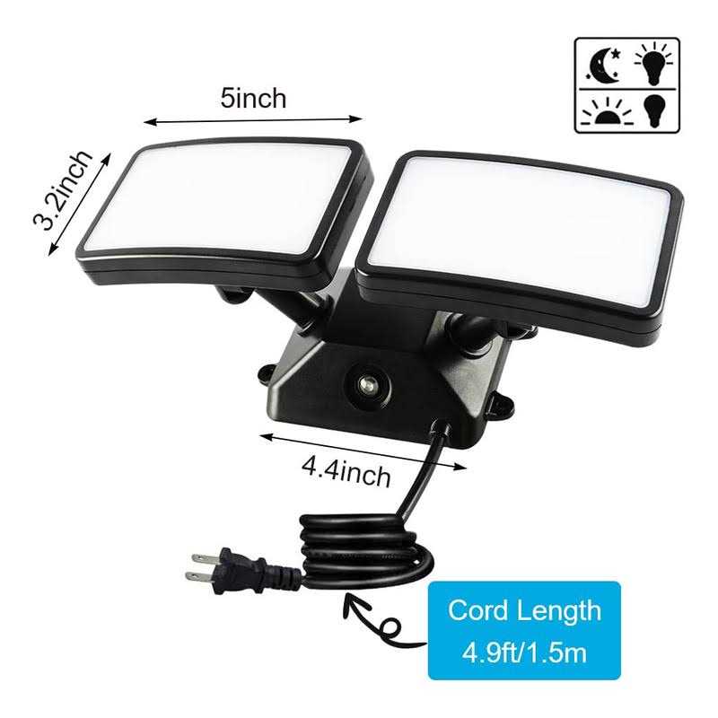 FAGUANGAO Dusk to Dawn LED Security Light,18W Plug in Flood Light Outdoor,5000K Daylight,1600lm, IP55 Waterproof,Adjustable 2 Heads Wall Light for