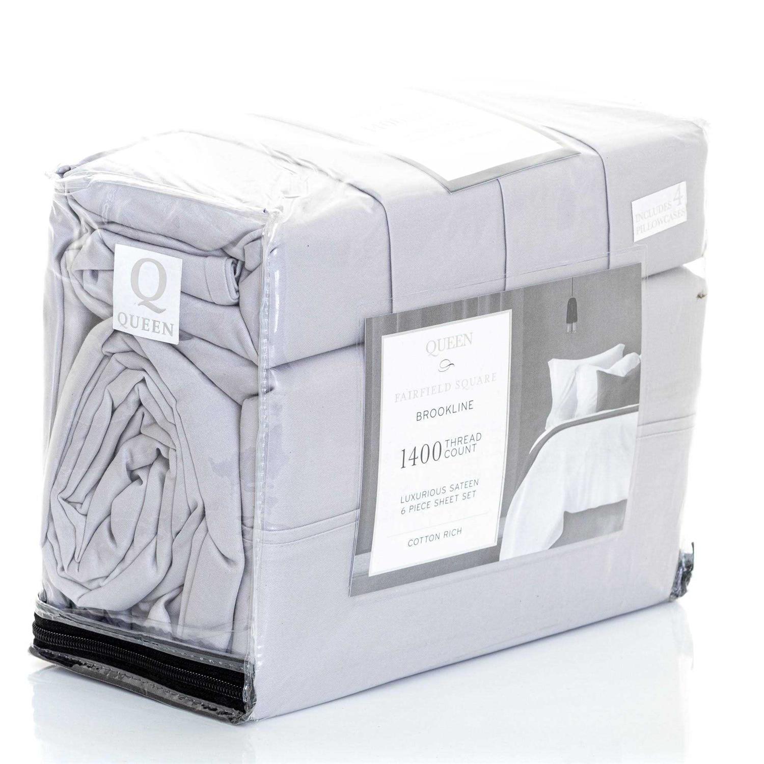 Fairfield Square Collection Brookline 1400 Thread Count 6 Pc. Sheet Set, Queen – Light Grey