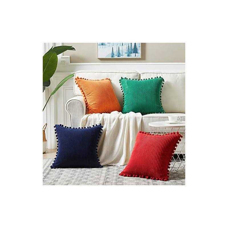 Brand: Fancy Homi – Color: Orange – Features: Material&Package: 2 pieces pillow covers(18×18 inch/45×45 cm) made of premium corduroy, NO INSTER. Exquisite Chic Design: Pom poms on each side adds cuteness to these pillow covers, unique and adorable. – It’s a nice gift for your families and friends. Softness & Durability: The fabric is pretty soft and skin-friendly. – The cases are firm and sewn well. A great support for you to lean or lay on. Easy for Replacing: This cushion cover has a super long invisible zipper which improves the appearance and provides easy insertion and removal. Washing Tips: Hand Wash recommended, Machine Washable in gentle mode. Tumble Dry Low, Do Not Iron. – Stays the same and as new after every wash.