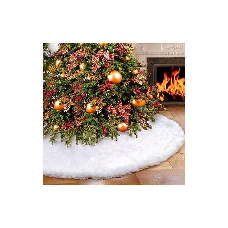 Luxury faux fur Christmas tree skirt: Very soft and warm. High quality plush fabric material with soft and comfortable texture and impeccable crafts Package Includes: 1 x Tree Skirt; 36 Inch (90cm) Reusable Christmas Decor – The white fur tree skirt has long-lasting durability, making it an essential accessory for the Christmas season, after christmas,maybe you can use it as a home carpet or use it next year. or you can fold it up to store if not needed (Note:Hand Wash in cold water and air dry preferred.) Hidden Velcros: Edges are stitched, velcros at the opening allow you to secure tree skirt in place, easy to fixed, much better than others. Gorgeous and elegant. Perfect Christmas Decoration: Slit to fit white snow Christmas party theme ornament. Gorgeous and elegant /b christmas tree skirts br Made of Luxury faux fur,very soft and warm. High quality plush fabric material with soft and comfortable texture and impeccable crafts br Color: Pure white br Perfect home decor for Christmas, wedding, engagement, anniversary, party,It is also a great choice for commercial holiday decorations. br Decorate your home with the tree skirt to create a nice Christmas!