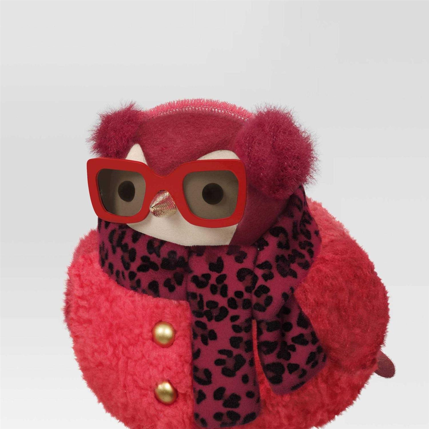 Recommended for indoor use. Red colored bird wearing leopard scarf and red glasses. Great decorative accent for your home. Great for decorating shelfs, mantles or tables.