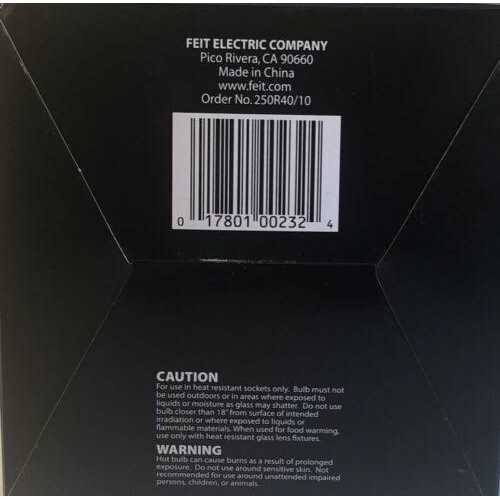 Feit Electric 250r40/10 Reflector Heat Lamps, 250 Watt, Red