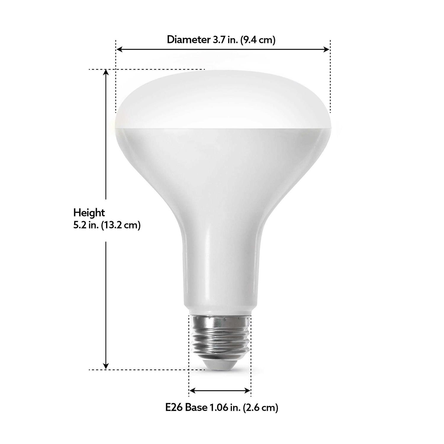 Diameter : 3.75″. Wattage : 8 watts. Watt equivalence : 65 watts. Voltage rating : 120 volt. Lumens : 650 lumens. Light Color : Color Changing – Bulb shape type : BR30.