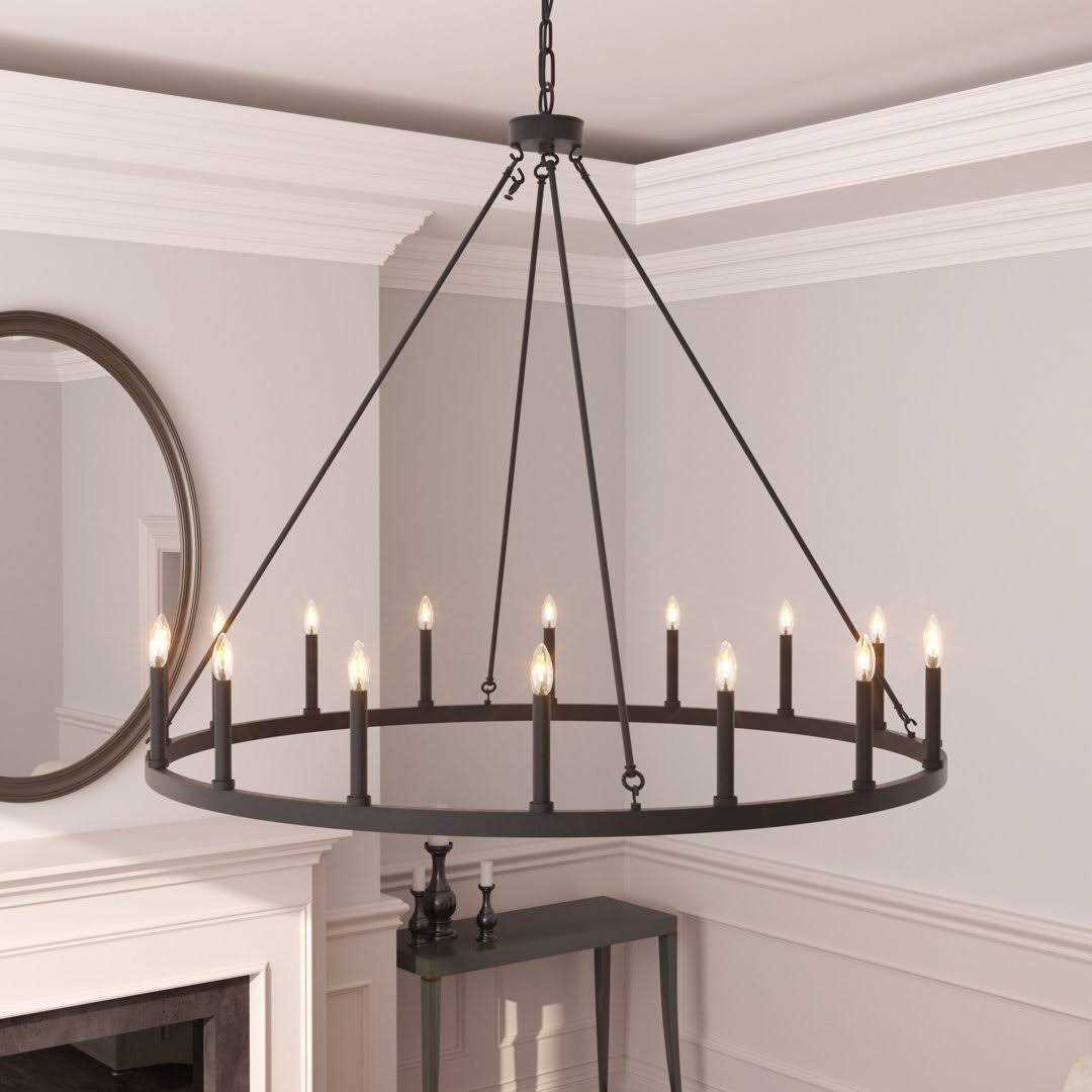 Finchley 16 – Light Wagon Wheel Chandelier Greyleigh Finish: Classic Black/Aged Zinc
