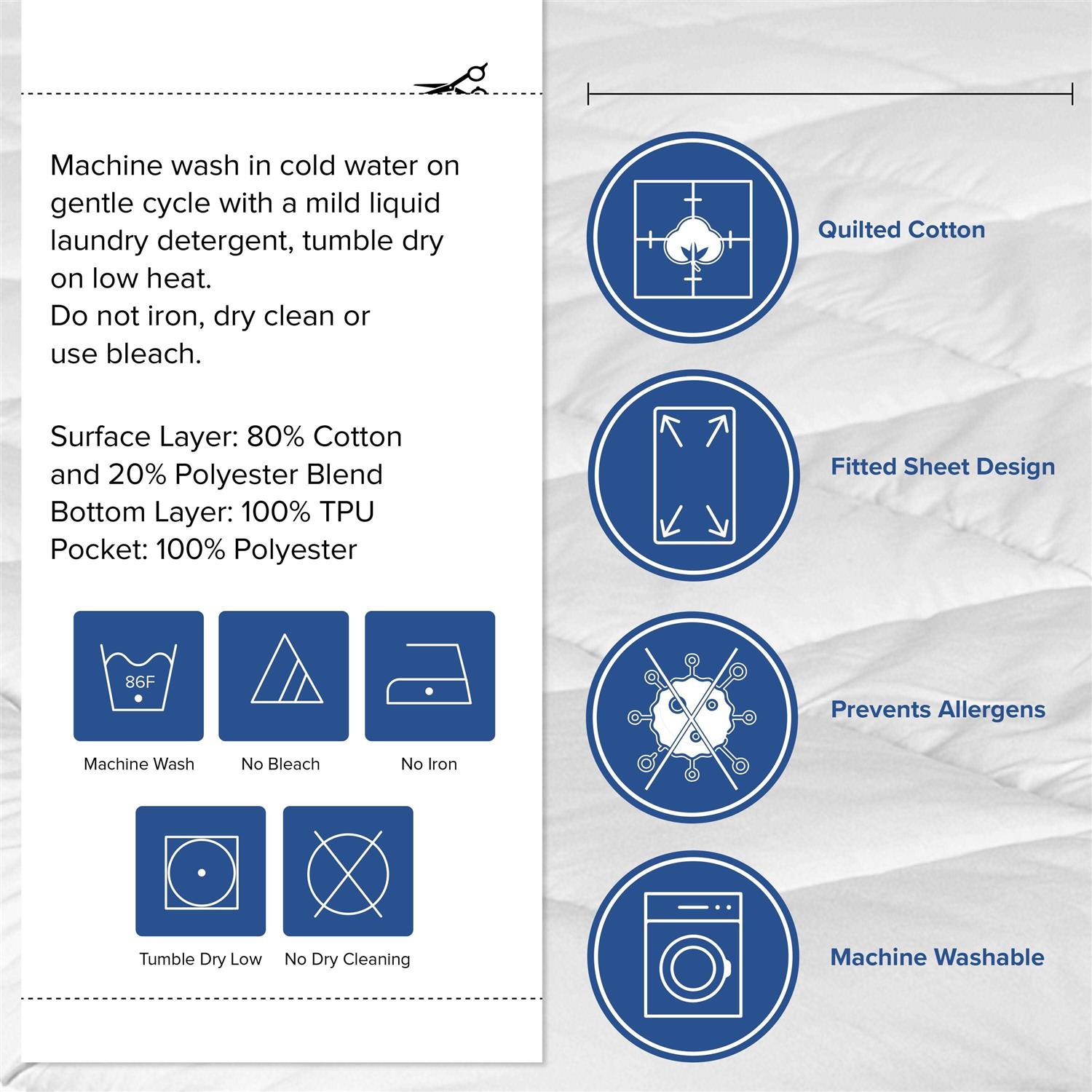 - Elastic Corners and Fitted Design Suitable For 8″ – 21″ Mattresses