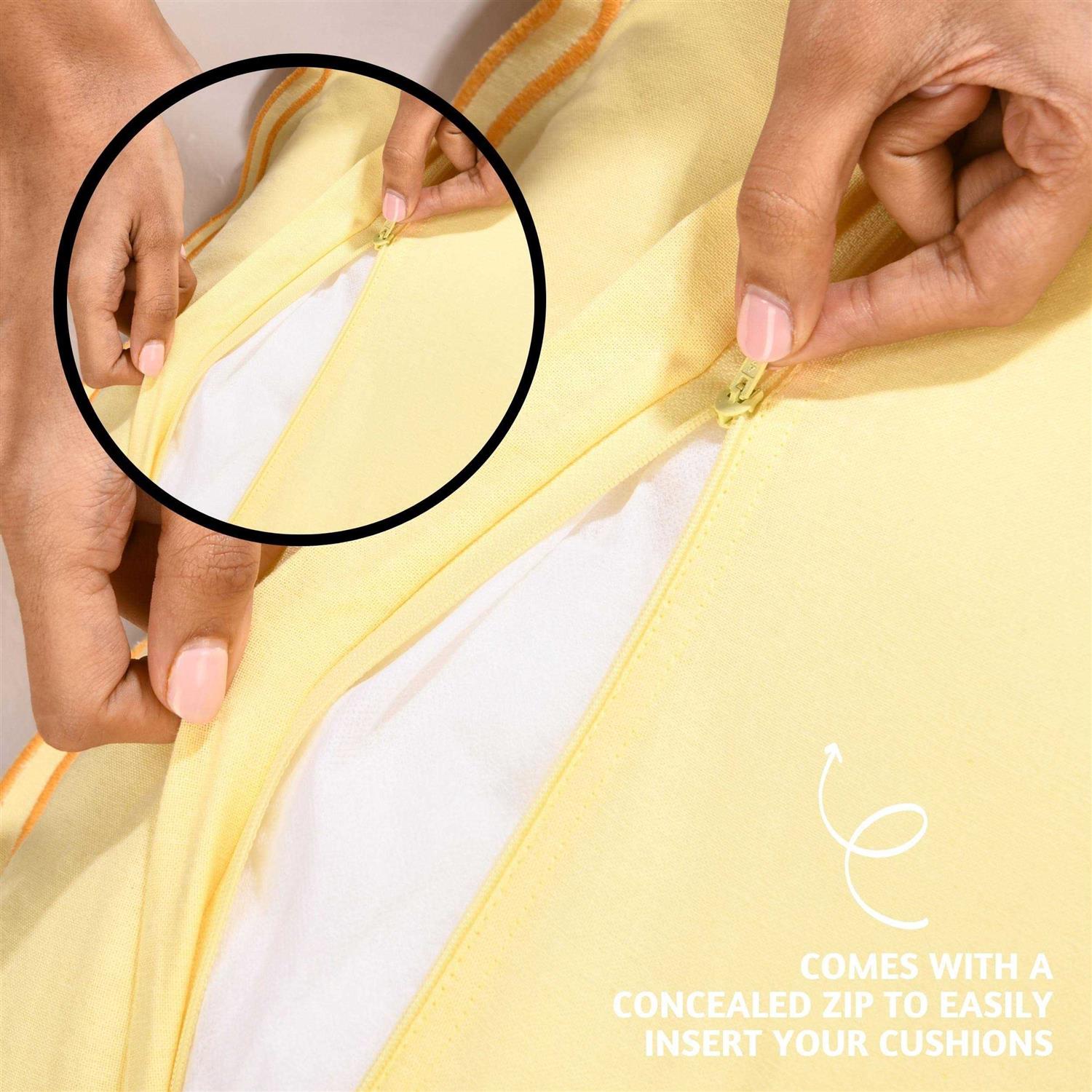 100% Cotton [ STATEMENT PIECE ] – Our accent pillows have a modern look with vintage patterns. This statement soft spring pillows has a unique boho design that makes a perfect decoration for bedroom, living room, farmhouse, car, outdoor or indoor and almost all spaces. [ UTILITY – Concealed Zipper ] – These aesthetic pillow covers have a concealed back zipper which holds the cushion firmly and allows easy removal and refill of these yellow throw pillows. [ FABRIC – Soft and Cozy ] – These living room decor pillow are made of 100% Cotton and come as a single statement piece. The pillows aesthetic or linen pillow covers are designed to give you utmost comfort with its soft and smooth fabric for your cushion inserts. [ PERFECT GIFT ] – These cream pillows or soft pillow case make for a perfect gift for any occasion right from housewarming, anniversary, birthday to Thanksgiving, Fall, Hannukah and more. [ WASHCARE INSTRUCTIONS – Handwash ] – Hand wash is recommended for these throw pillows for couch. You can machine wash cold separately, tumble dry low. Do not iron Enhance the charm and style of your living space with these cushion covers. This set of two 18 x 18 pillow covers is crafted with meticulous attention to detail, using 100% cotton for a soft and luxurious feel. With their unique scallop design, these throw pillow covers are sure to catch the eye and become a focal point of your home decor. The intricate scallop pattern adds a touch of elegance and sophistication to any room, creating a boho-inspired ambiance that is both trendy and timeless. Not only do these pillow covers elevate the aesthetics of your living room, but they also provide exceptional comfort and support. The high-quality cotton material ensures durability, making these covers perfect for everyday use. Whether you’re relaxing on the couch, reading a book, or entertaining guests, these cushion covers offer a cozy and inviting seating experience. Designed to fit standard 18 x 18-inch cushions, these square pillow covers are easy to install and remove, thanks to the convenient hidden zipper closure. This allows for hassle-free maintenance and cleaning, making them a practical choice for busy households. The versatility of these boho pillow covers allows you to seamlessly incorporate them into various interior design styles. Whether you prefer a rustic, farmhouse-inspired decor or a modern, look, they effortlessly complement any setting.