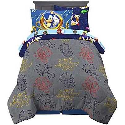 Sonic The Hedgehog Kids Twin 5 Pcs Bedding Sheet Set with Reversible Comforter