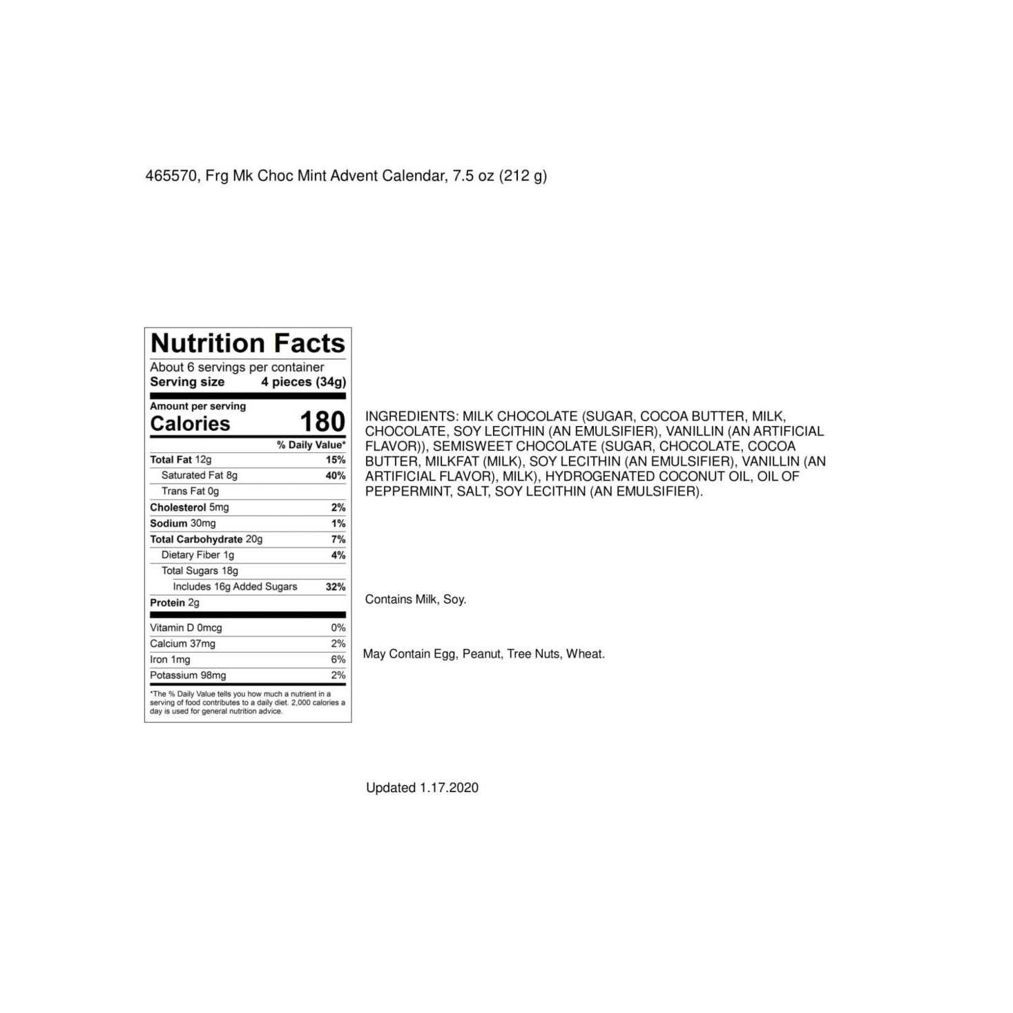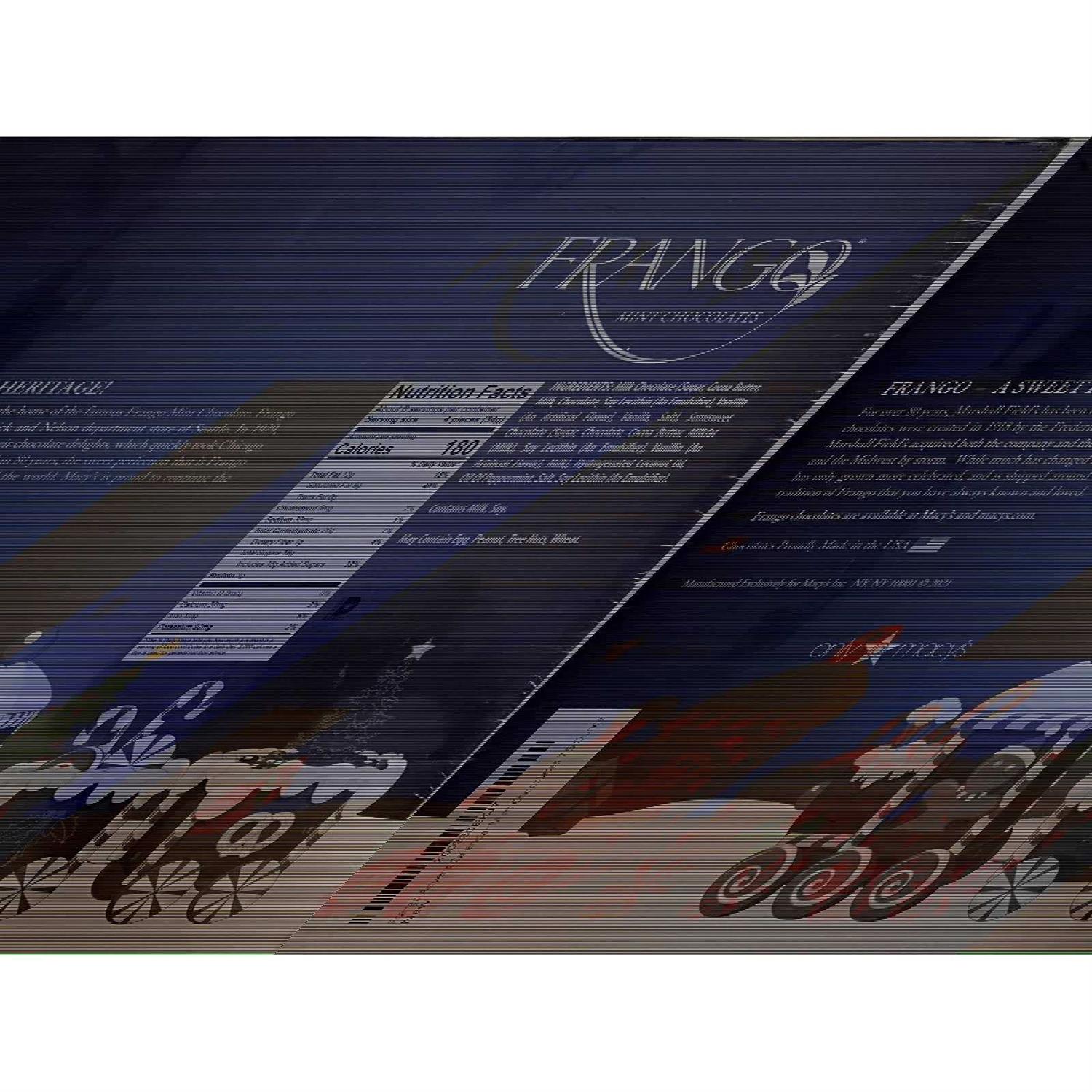 Product is kosher, products have been manufactured on shared equipment that processes peanuts, tree nuts, milk, wheat, soybean, and egg products This product is certified Kosher dairy. Net weight: 7.5 Ounes Made in the USA A gift as sweet as the season. Frango famous milk mint chocolate in an adorable Advent Calendar ready to count down the days.