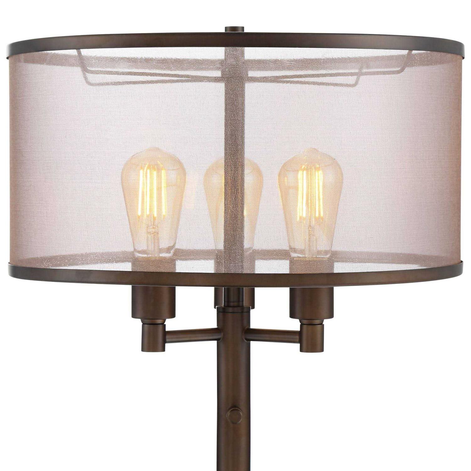 Franklin Iron Works Rustic Floor Lamp 3-Light Oiled Bronze Metal Brown Sheer Shade LED Edison Bulbs for Living Room Bedroom