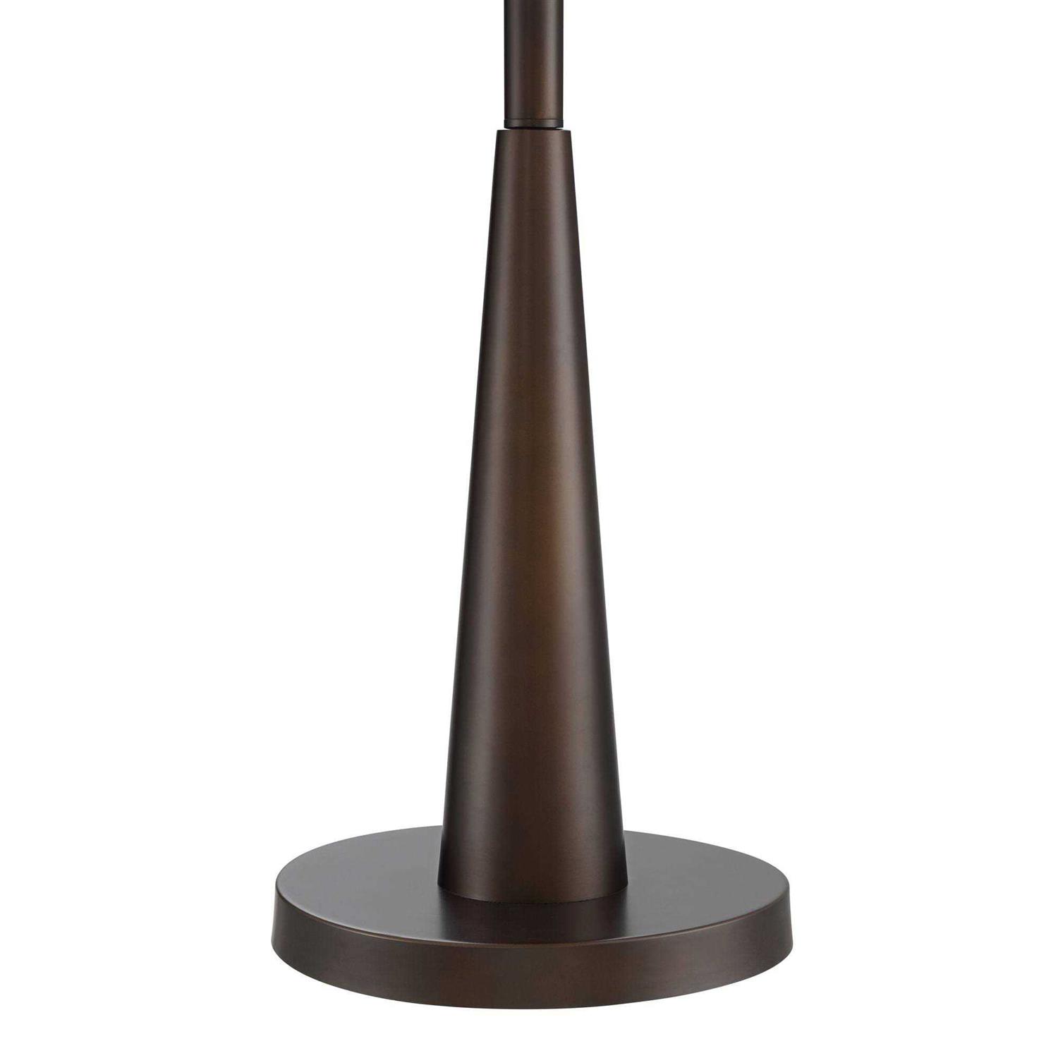 From the exceptional craftsmen at Franklin Iron Works?, this floor lamp brings a refined but inviting sensibility to any room. The lamp boasts sturdy metal construction with an oiled bronze finish and is topped with a sheer shade which allows the Edison-style bulbs to be the focal point.