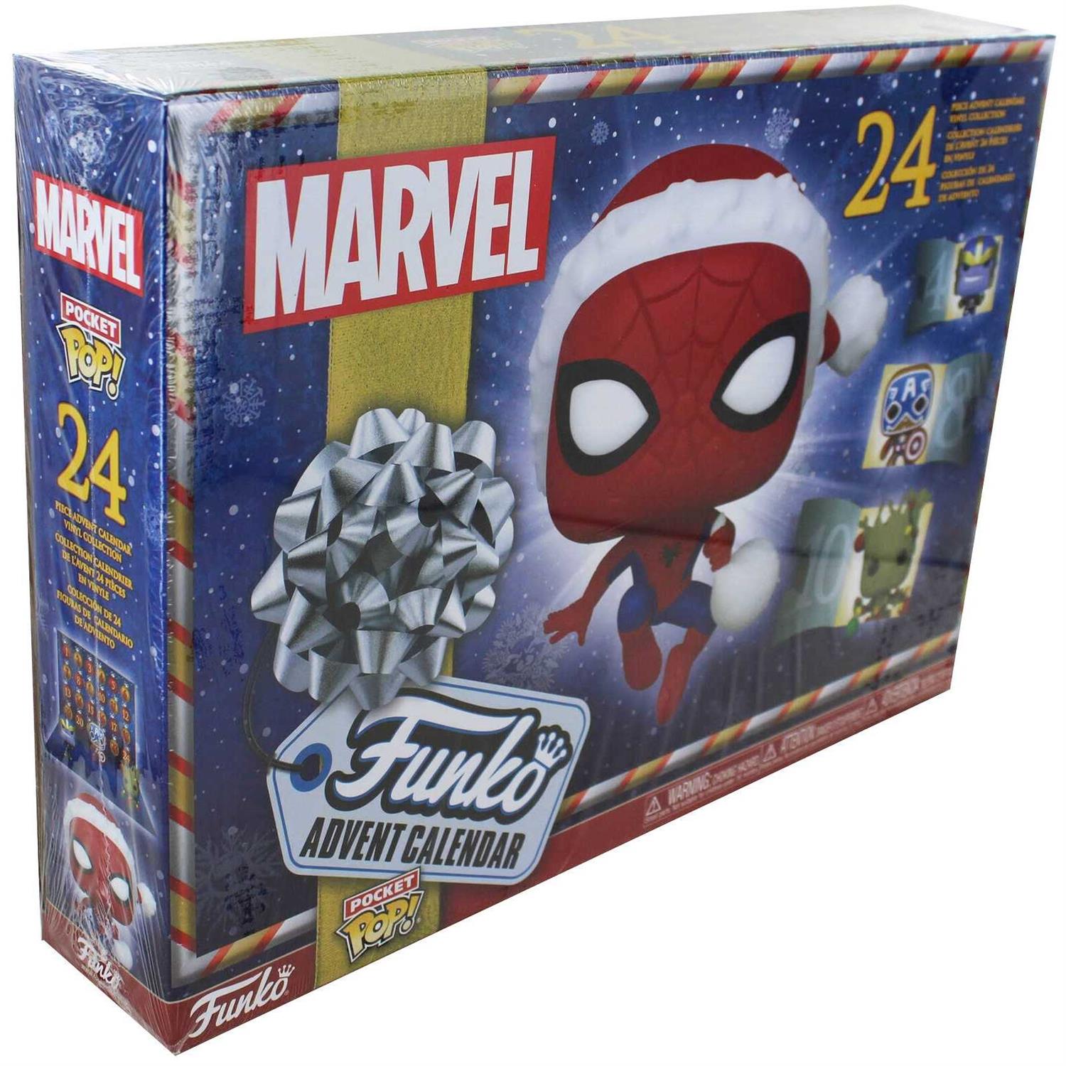 Take your holidays to new heights with the Marvel Funko Advent Calendar! Spider-Man is swinging by to deliver 24 unique Funko Pocket Pops! as you count down to your winter festivities.Open the tiny doors to reveal some of your favorite Marvel characters dressed in their holiday finest. Each collectible brings a festive twist to their typical look, making these heroes and villains a super addition to your holiday décor. Who will team up to join in on your celebrations? Pocket Pop! collectibles vary in height depending on character. The maximum collectible height is approximately 2.25-inches tall.