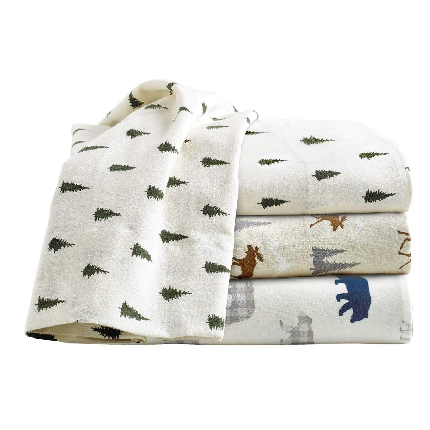G.H. Bass & Co. Spruce Tree Print Cotton Flannel Sheet Set, King – Forest Green