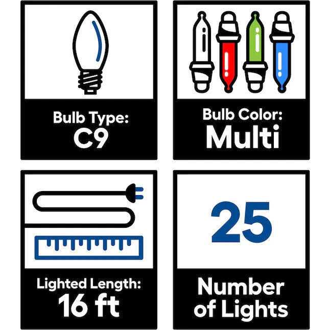 - GE 25 Count Multi String A Long C9 Glow Bright Ceramic Light Set