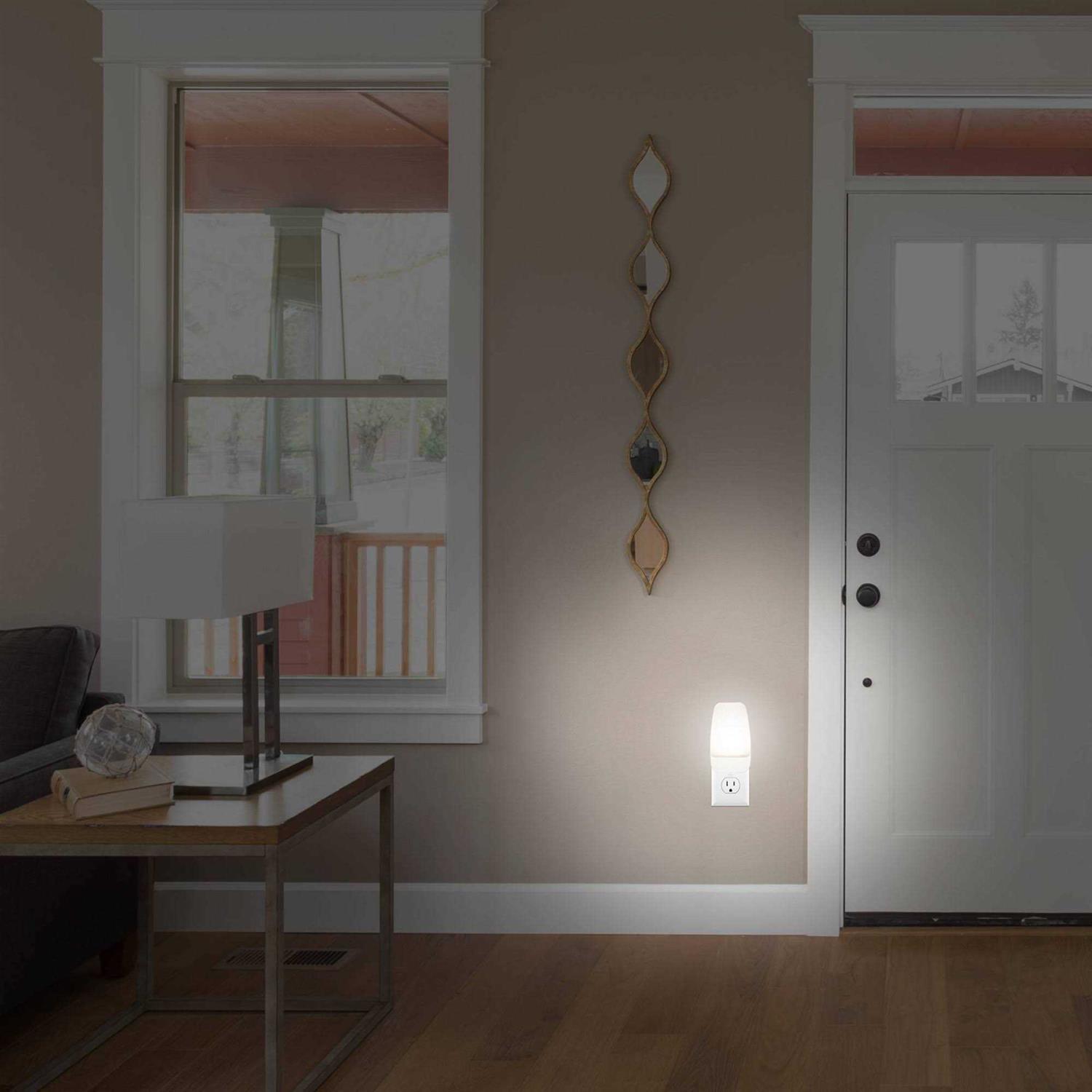 - Compact Night Light: The modern night light design plugs into any standard unused indoor outlet while leaving the 2nd outlet free for use