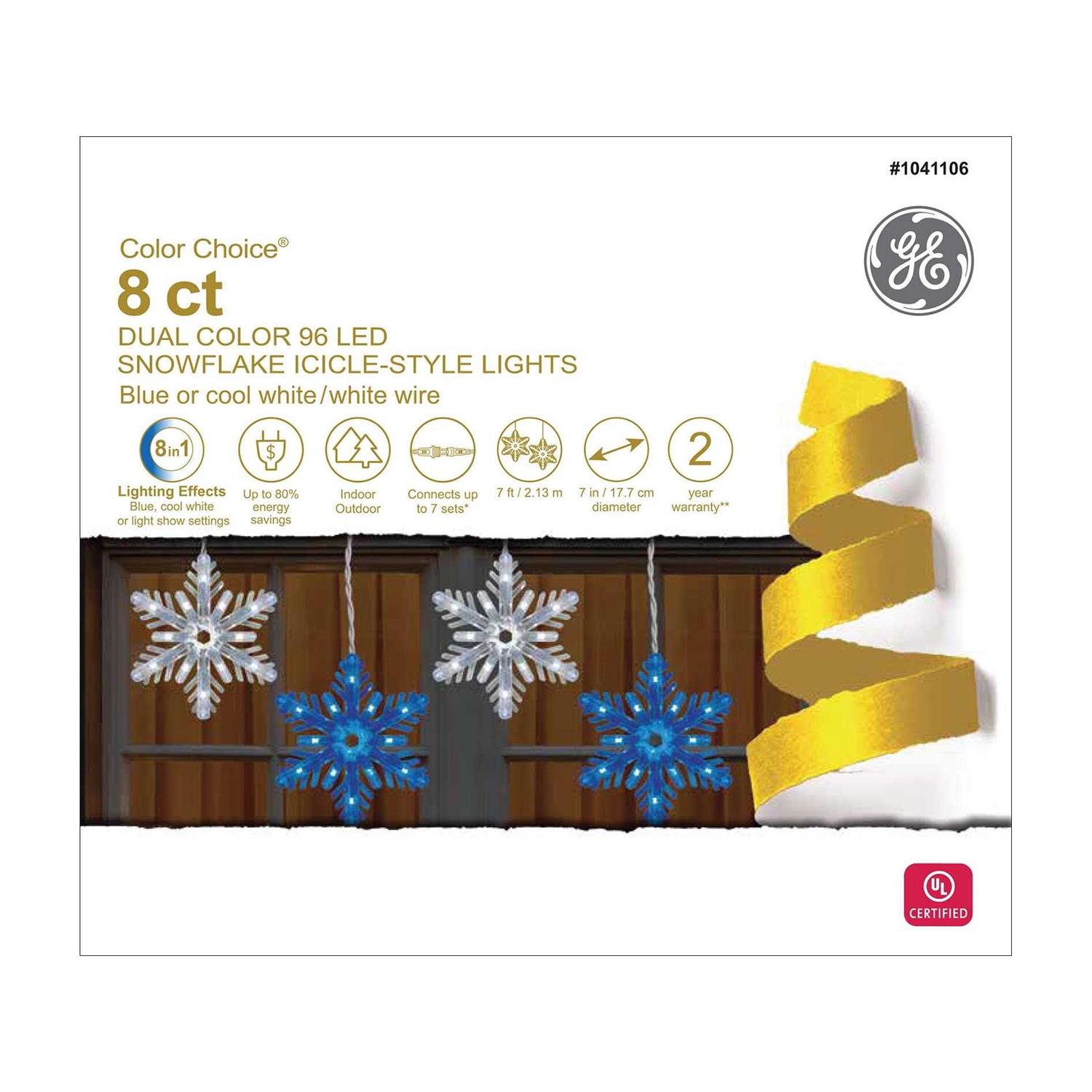 GE Color Choice 96-Count Multi-function Color Changing Snowflake LED Plug-In Christmas Icicle Lights 89150LO