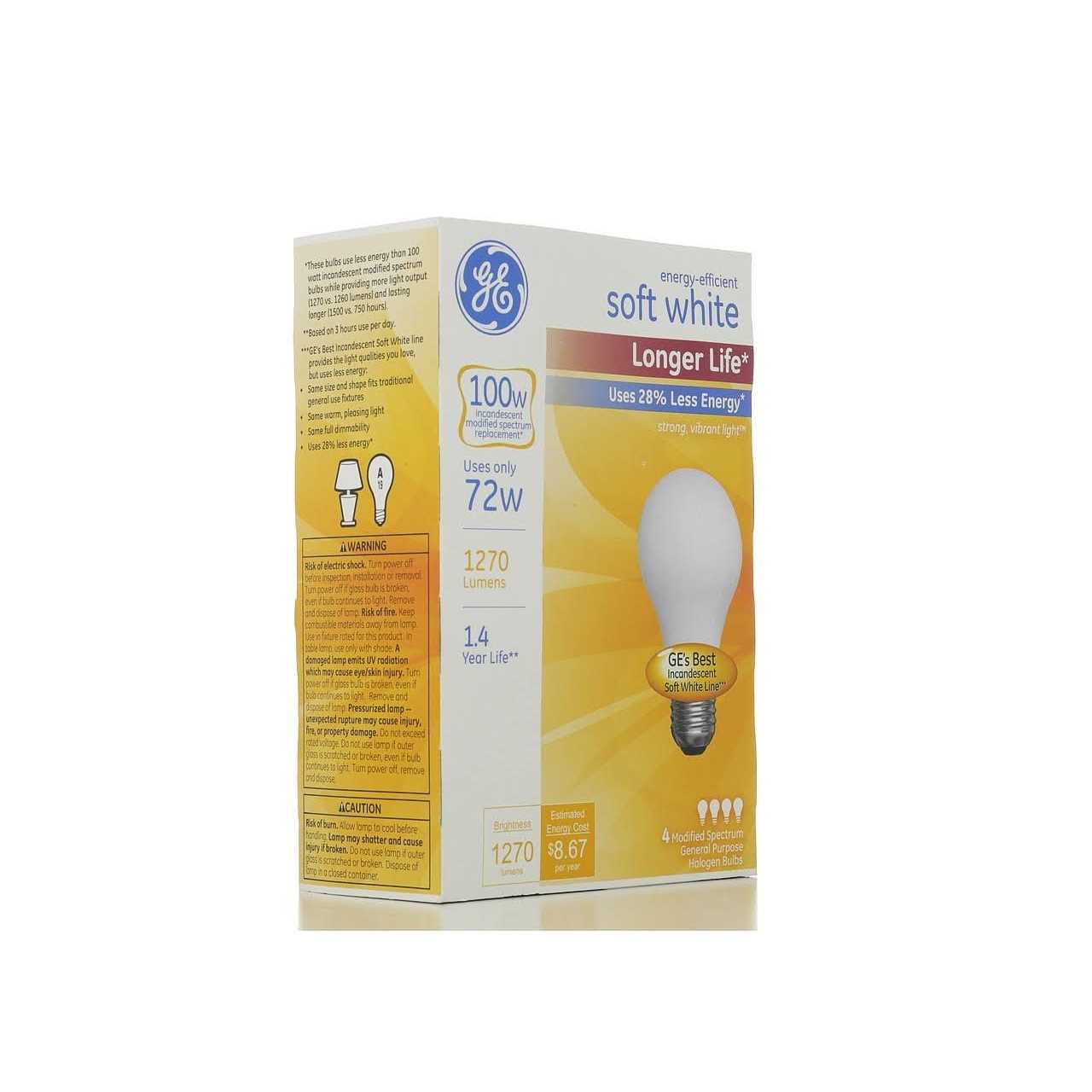 GE Lighting 70284 72W Soft White Long Life Halogen Bulb 4 Pack