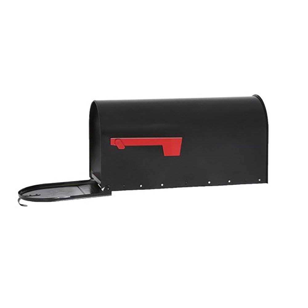 Give your mail a safe and secure home when you use the Solar Group Inc E16B Large Black Steel Mailbox. This item contains a metal latch to keep it closed securely and a flag that can alert you to correspondence to pick up. The Solar Group mailbox comes fully assembled and ready to install and it displays an embossed American eagle design. The galvanized finish protects the box from rust and damage.