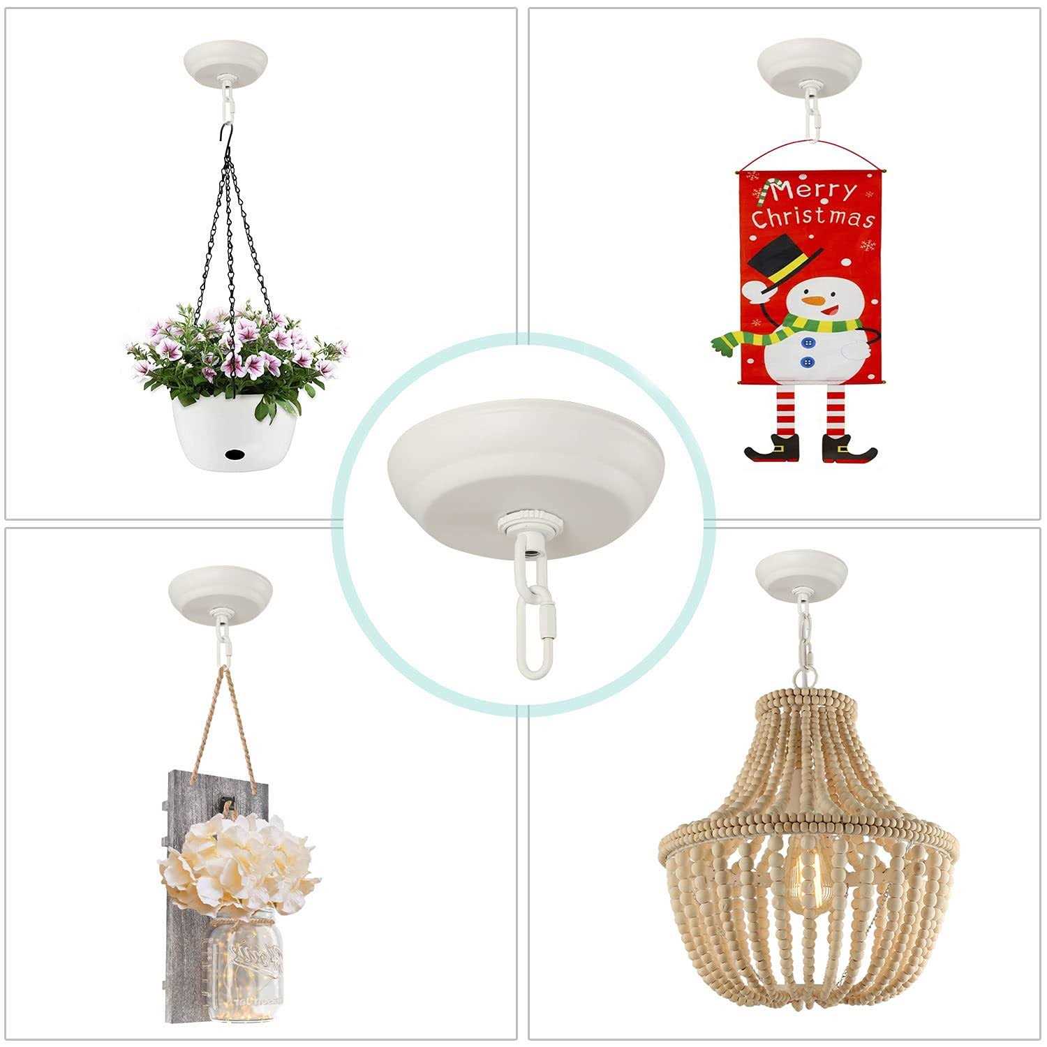 Made of high-quality metal, durable and rust-resistant for ensuring your safe use. Process is finish coat, which is perfect with farmhouse style pendants. Specifications: Material: Iron. Max load: 40 lb Body Size: 5×1 Inches(DxH). Color: White Application: pendant lamp, decoration hanger, lantern hook, etc.