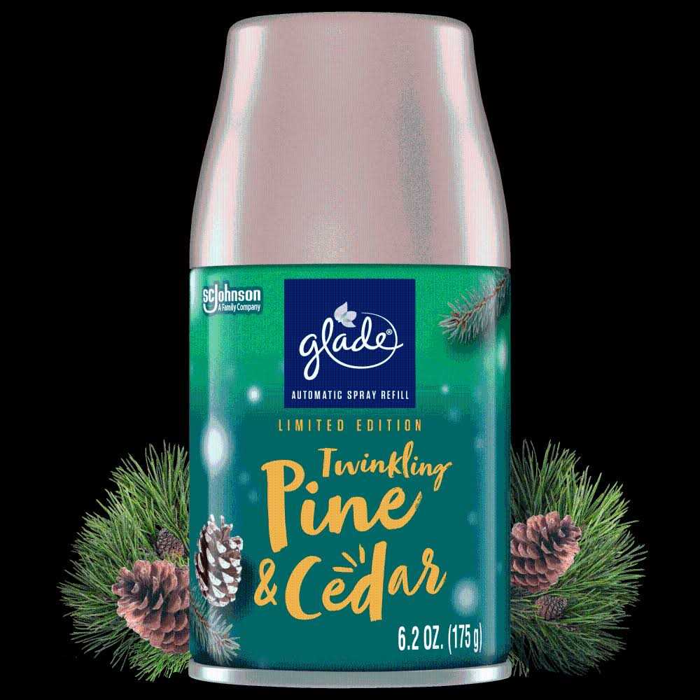 - Turn up the holidays with Twinkling Pine & Cedar, a limited edition automatic air freshener spray from the Glade Holiday Glow Collection.