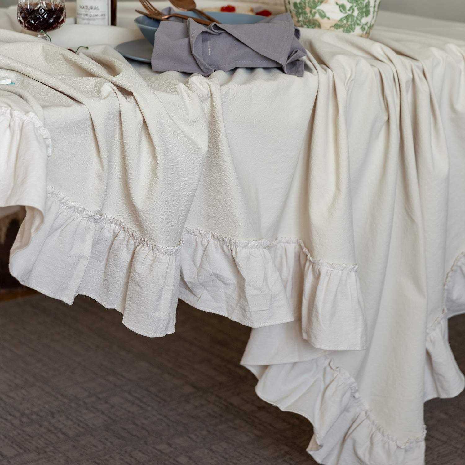 Glory Season Retro Farmhouse Ruffle Tablecloth Cotton Flounces Trim Washable Table Cover Tablecloths for Rectangle Table Baby Shower Kitchen Party