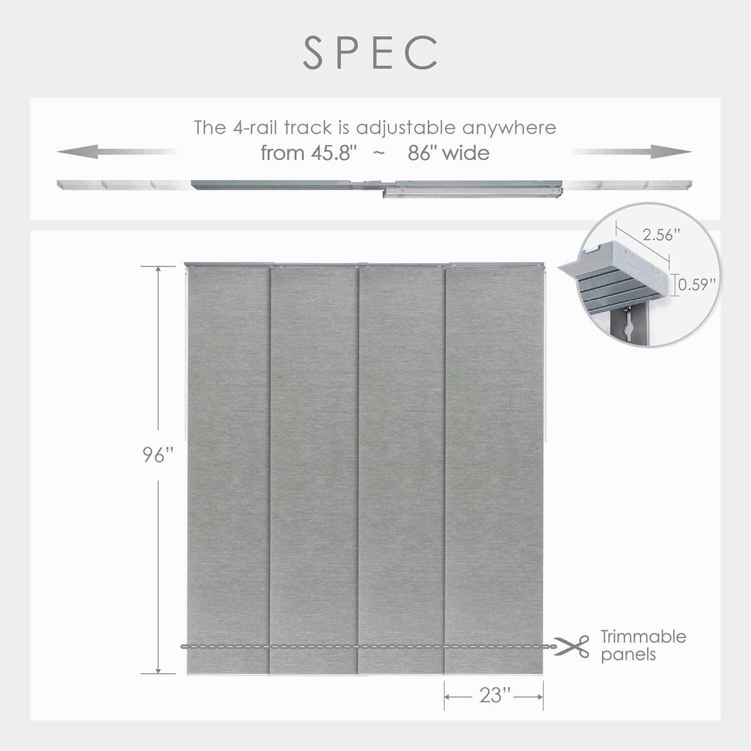 GoDear Design 45.8 inch-86 inch W x 96 inch H, Adjustable Sliding Panel, Light Filtering, Moonstone, Size: 45.8-86 W x 96 H, Gray