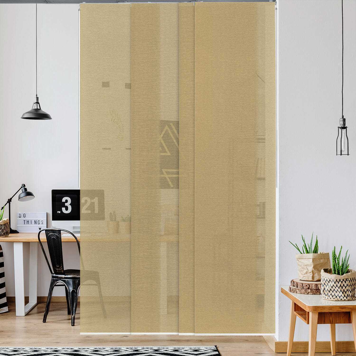 Godear Design Deluxe Adjustable Sliding Panel are perfect for French doors, patio door, balcony door, closet door, and any large windows. This is also a smart choice for the room divider, which can keep a room private and stylish. Available in a variety of natural woven materials and fabrics. The 4-rail track is adjustable anywhere from 45.8 in. to 86 in. wide. The dimension of each panel is 23 in. wide and 96 in. tall. You can simply trim the panel height to what you need and attach with the bottom bar to keep it sleek and clean. There are 2 control stack options, you can easily slide with a solid metal wand all the way to the right or left.