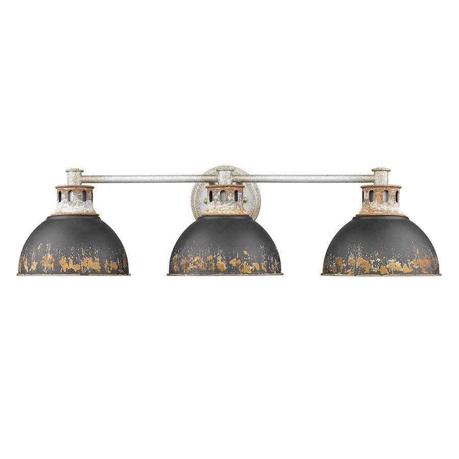 - “An Aged Galvanized Steel finish complements choice antique shade color options”